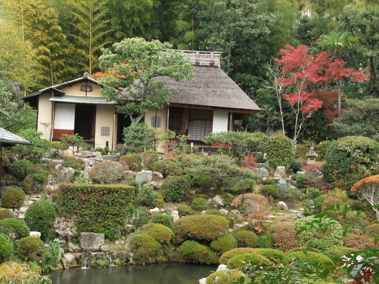 築山の茶室は茅葺屋根でぐっとくるほど風情があります。