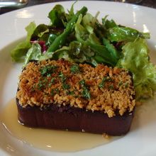 写真は前菜のブータンノワールのテリーヌくるみ風味です。