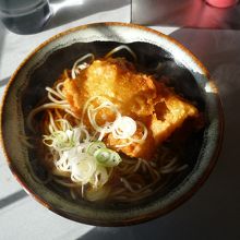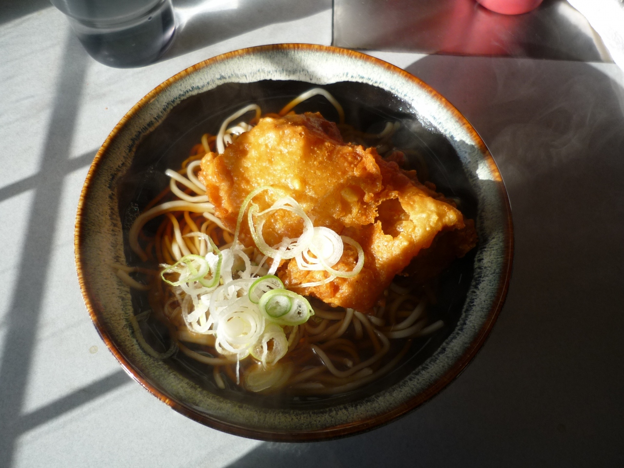唐揚げ1個入りと2個入りがあり、少食の方には1個入りをおすすめします。というのも、メニューの写真よりもはるかに立派な唐揚げがそばの上に乗せられるからです(笑)