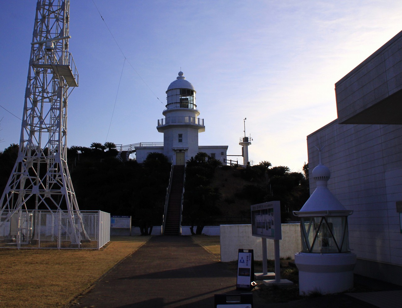 都井岬園地の最奥にある灯台で、海に近いながら海抜250mあまりの高さの場所にそびえている。日向灘や日南海岸、そして反対側の志布志湾や大隅半島も一望できる絶景のスポットで、灯台内部も午前9時から16時まで有料で公開されています。