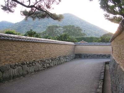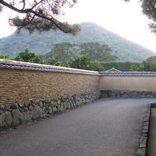鍵曲(かいまがり)を構成する長い土塀が残ります。