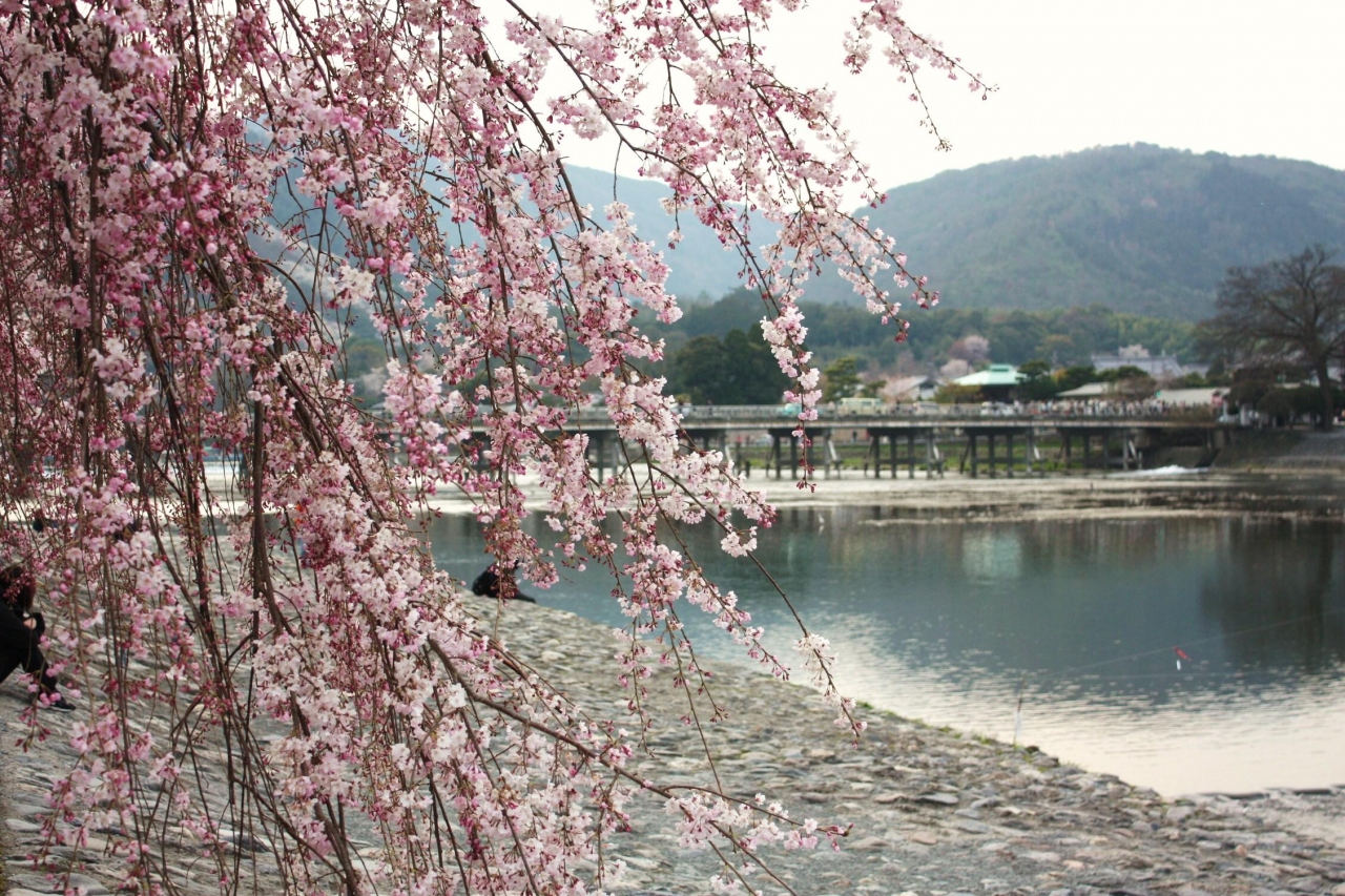 この地域との象徴的な存在である渡月橋と桜を一緒に撮影するのが定番。