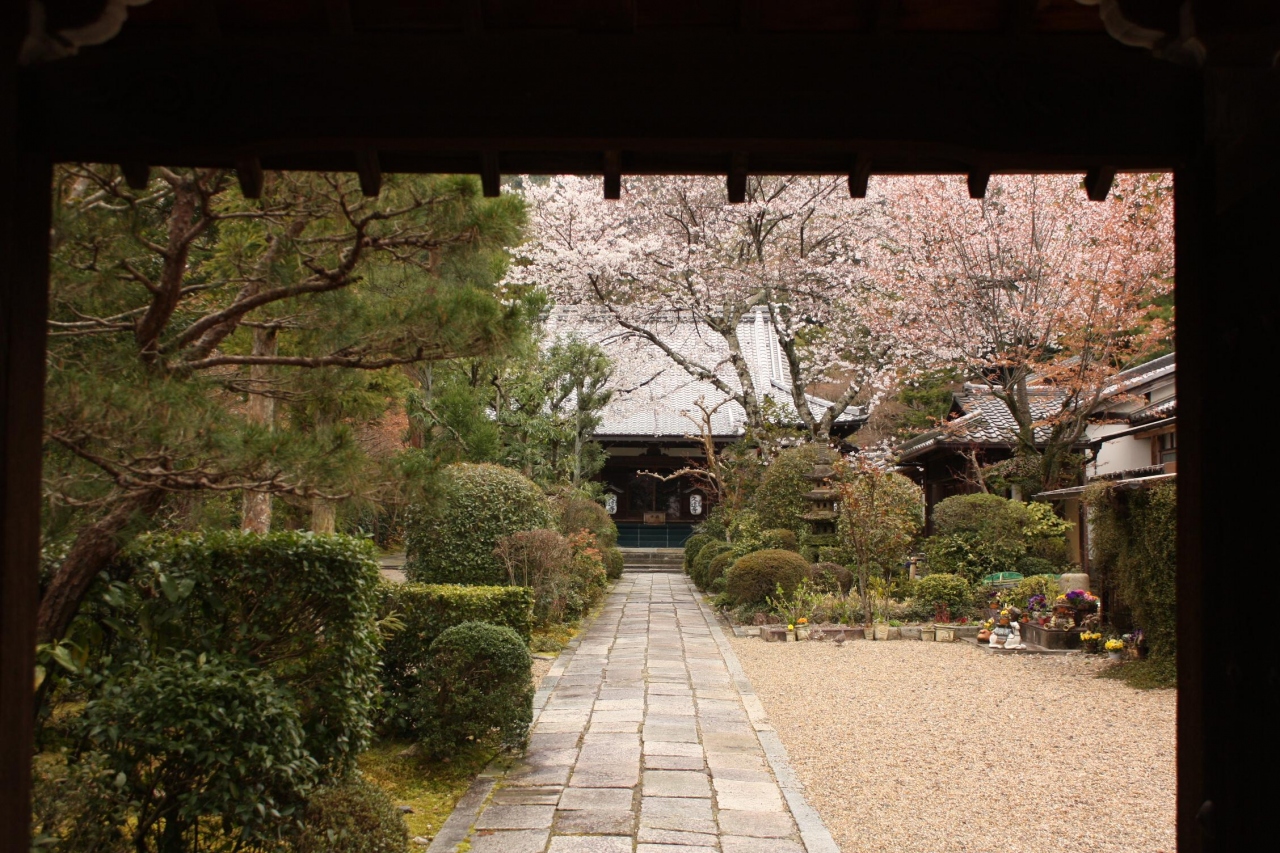二尊院の観光を終え、次は清涼寺(嵯峨釈迦堂)に向かおうと歩いていましたが、その途中で桜が綺麗に咲いていたので立ち寄ってみました。