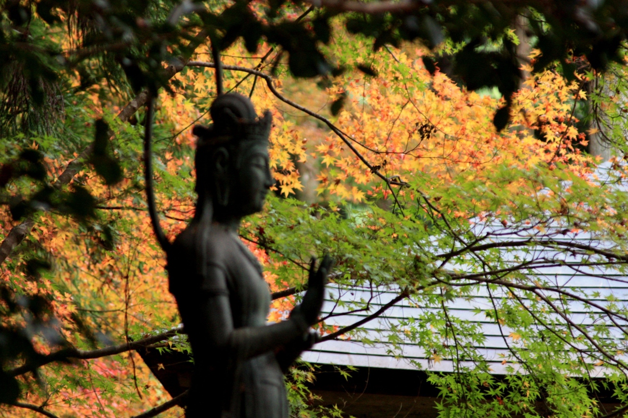 ここは急な山の中腹にあるので、山の下の方と上の方で紅葉の様子も微妙に変わっていました。