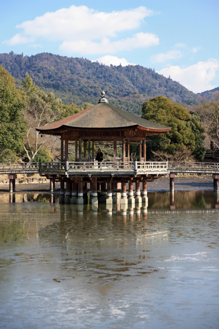 淺茅(あさじ)が原の南にある鷺池に浮かぶ浮見堂。