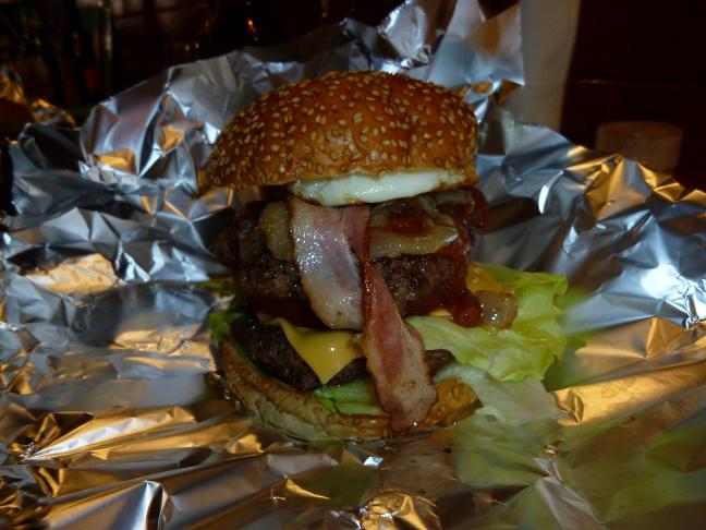 路地裏バーガー:プレーンタイプにチーズ・半熟目玉焼き・ハンバーグ×2(1,500円)