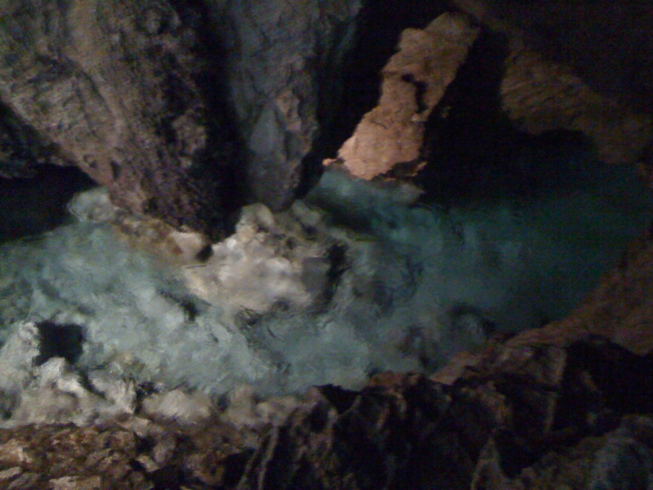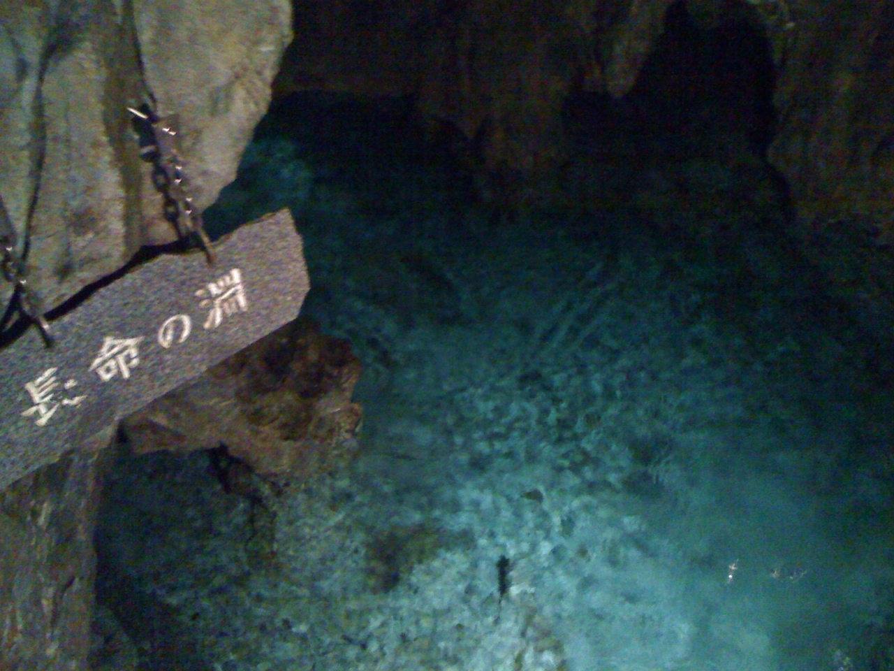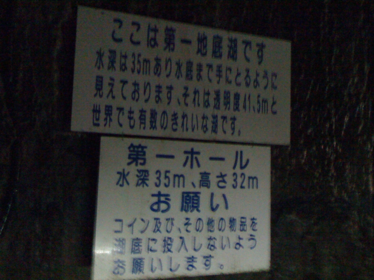 順路に沿って階段を進むと、展望台に出て上から地底湖を望むことが出来ます。