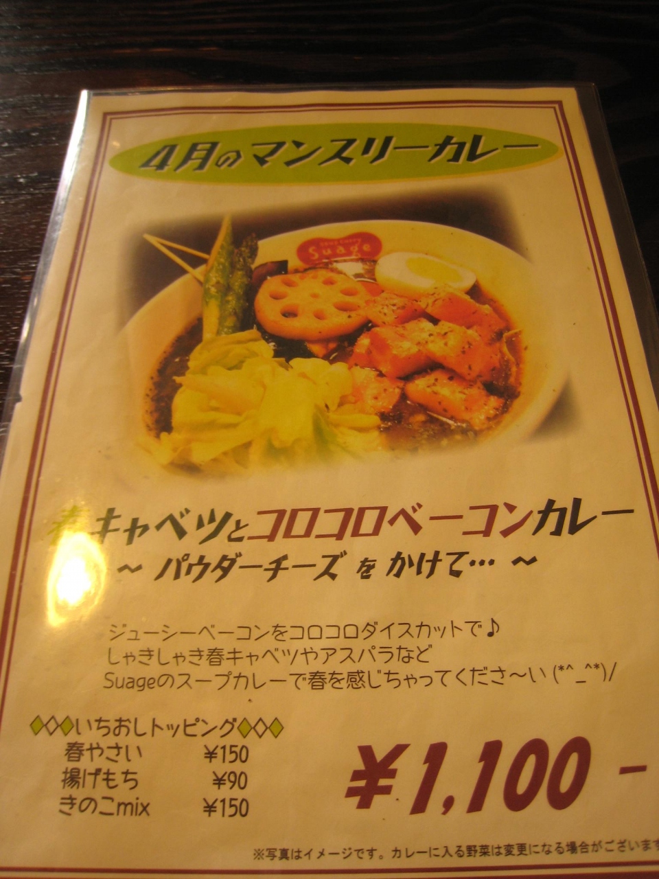 私はマンスリーカレー「キャベツとコロコロベーコンカレー」1,100円をチョイス。