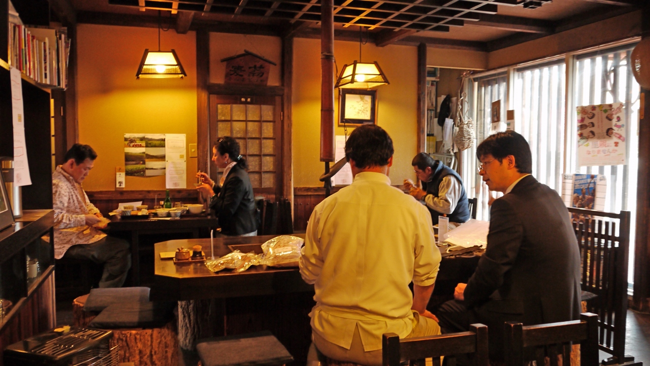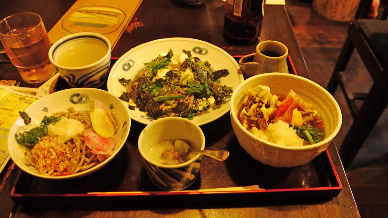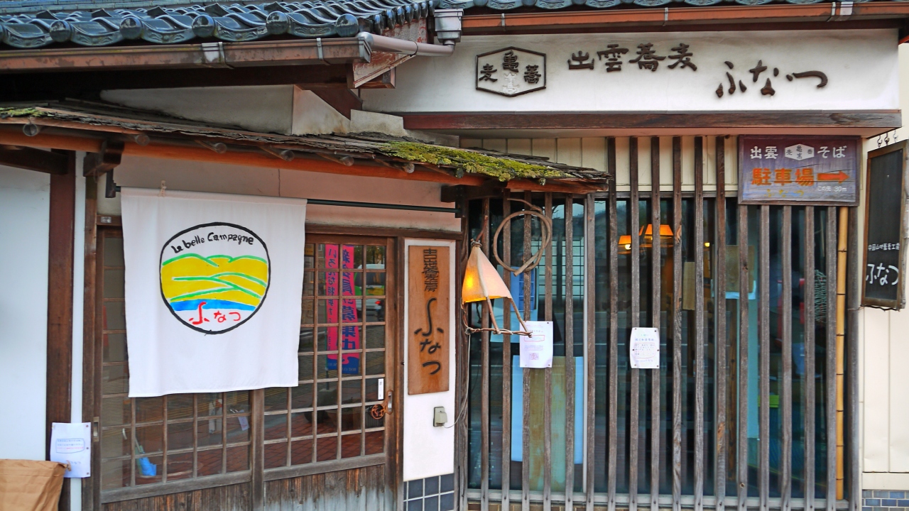 出雲そばを食べたく,バスを四十間堀川でおりた.バス停前にある.玉子焼き400円は絶品!1000円の地主そばを食べた.辛み大根のおろしそば,やわらか豆腐と栗田のせりそば,あたたかいみぞれそばの三種盛り.どれもおいしかったがおろしそばが最高!そばのあげ餅,そばぜんざいつき!おなかいっぱい大満足!推薦の店だ.少し観光地から離れているのが惜しい. 多少遠くても絶対寄って損はない!