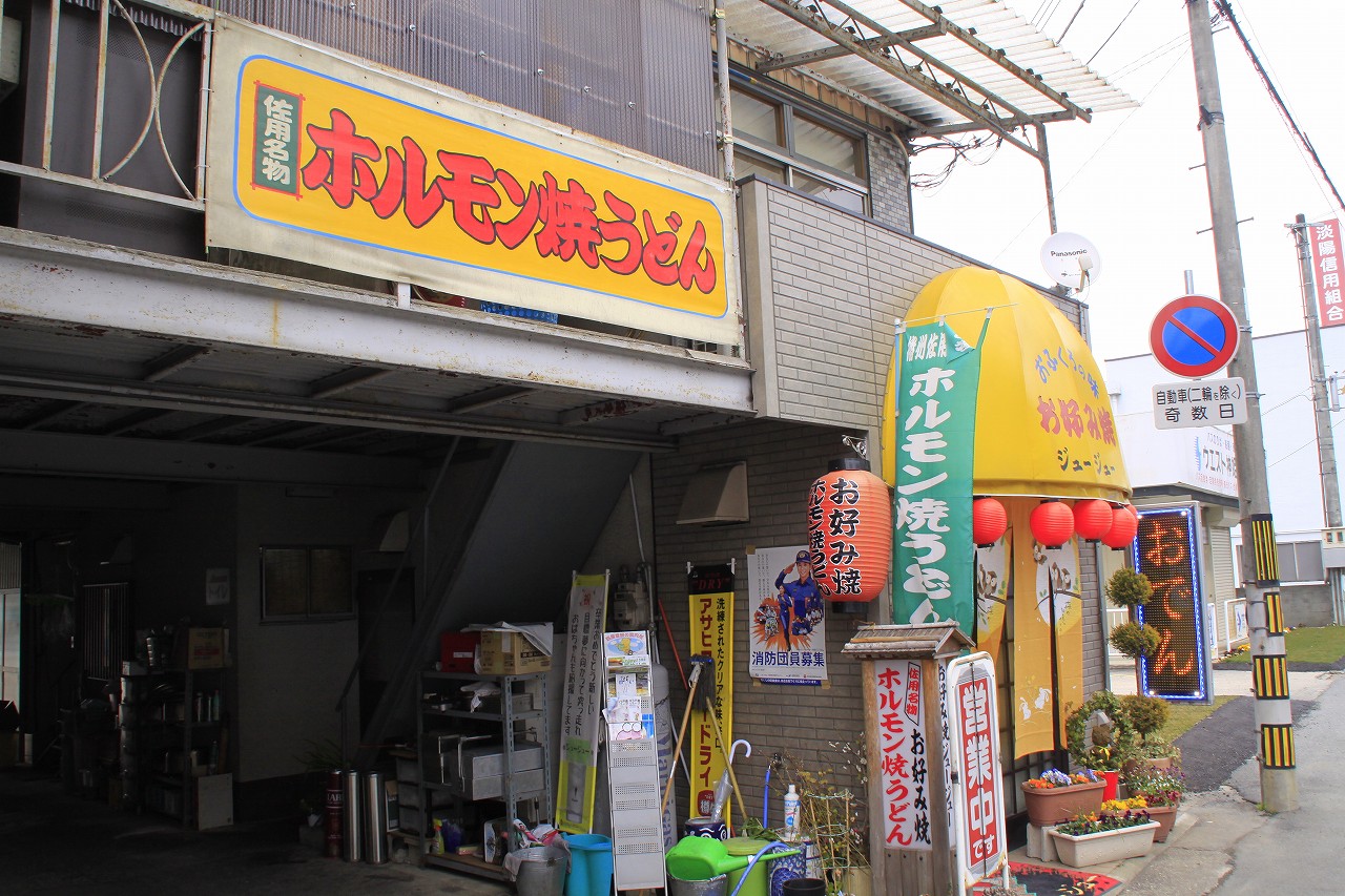 佐用駅前にある佐用名物・ホルモン焼きうどんが食べられるお店です。国道沿いにある専門店とは違って、家庭的な雰囲気が満点の店内です。値段も手ごろで600円~800円の間くらいです。ちなみに食後にはサービスで、インスタントコーヒーをもらいましたよ。