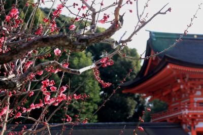 この時は2月の中旬ということで、境内に1本だけある「光琳(りん)の梅」が咲いていました。