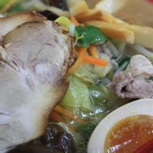 最初運ばれてきた器を見ると、ちょっと小さい、と感じるのですが、食べても食べても具が減らない。野菜もたっぷりでヘルシーです。