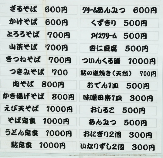 そして、昼食には掻き揚げそばが美味しく頂けました。また初夏から夏の終わりにかけては天然鮎の塩焼きも美味しいです。鮎は目の前の多摩川産です。