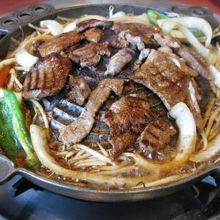 タレに漬けこまれた肉を焼いて食べるジンギスカン。