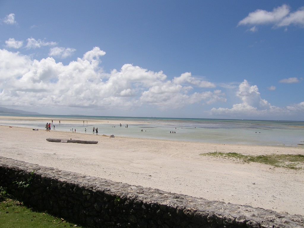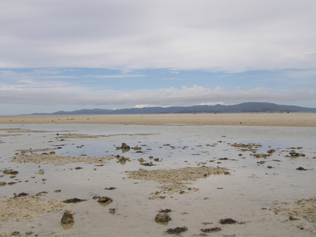 干潮時(特に大潮のとき)はどこまでも歩いて行けるぐらいの遠浅です。