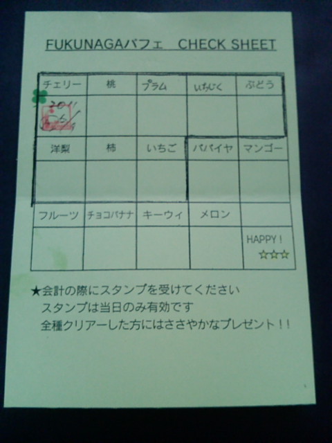 フルーツいっぱいのパフェ。スタンプカードをコンプリートしよう!