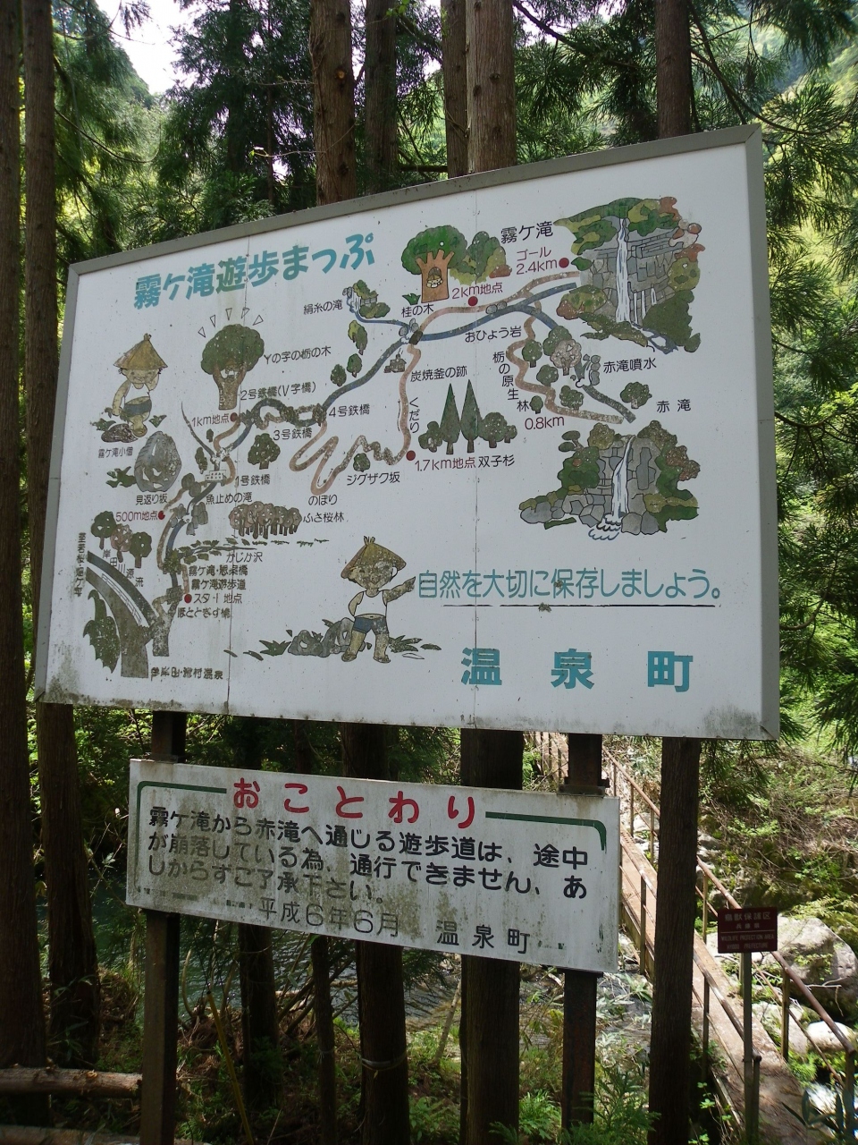 「霧ヶ滝」の隣りの沢にかかる「赤滝」に行くルートは通行止めになっています。