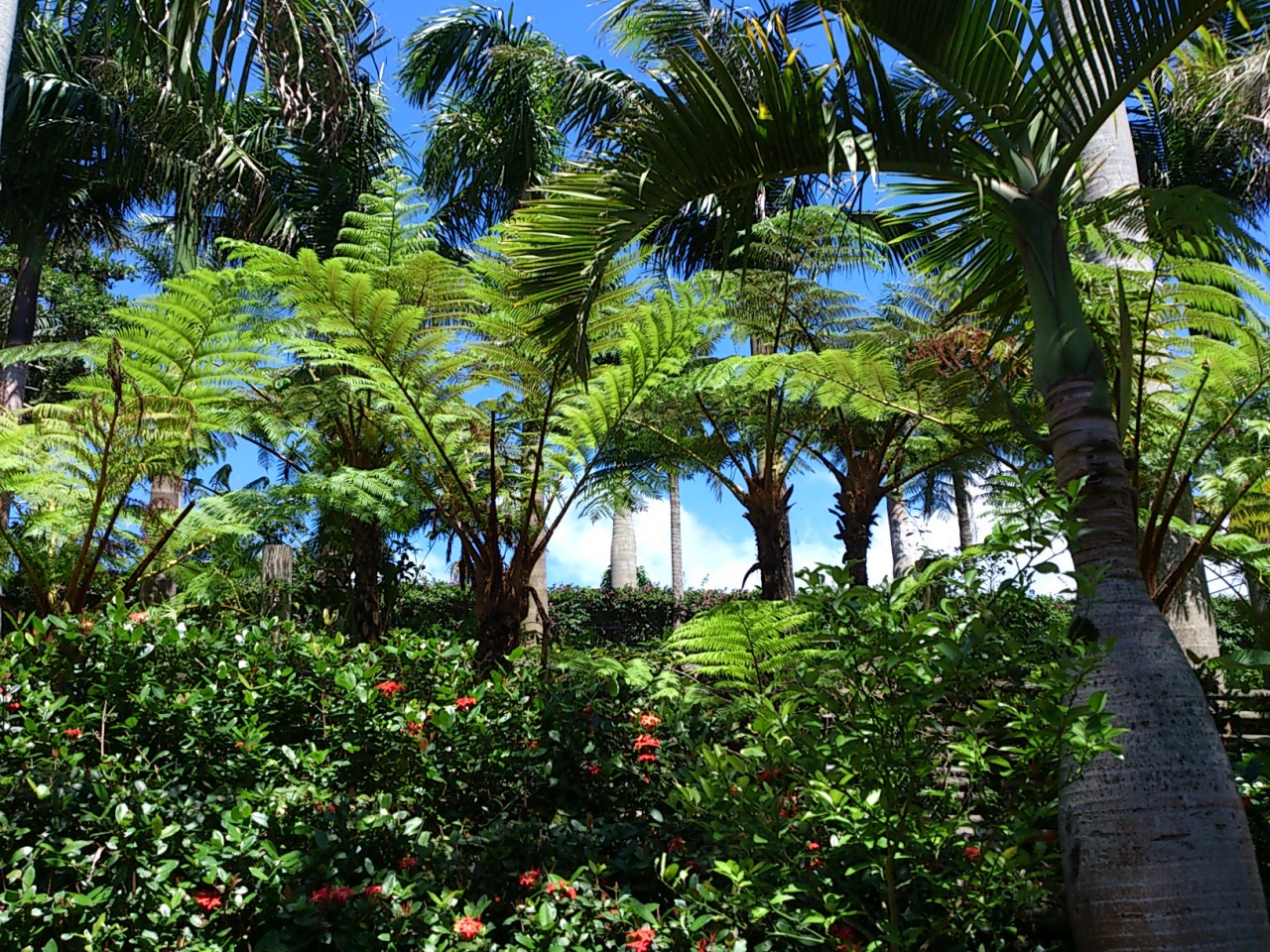 自動運転のカートでパイナップルや観葉植物が植わる園内を周遊し、