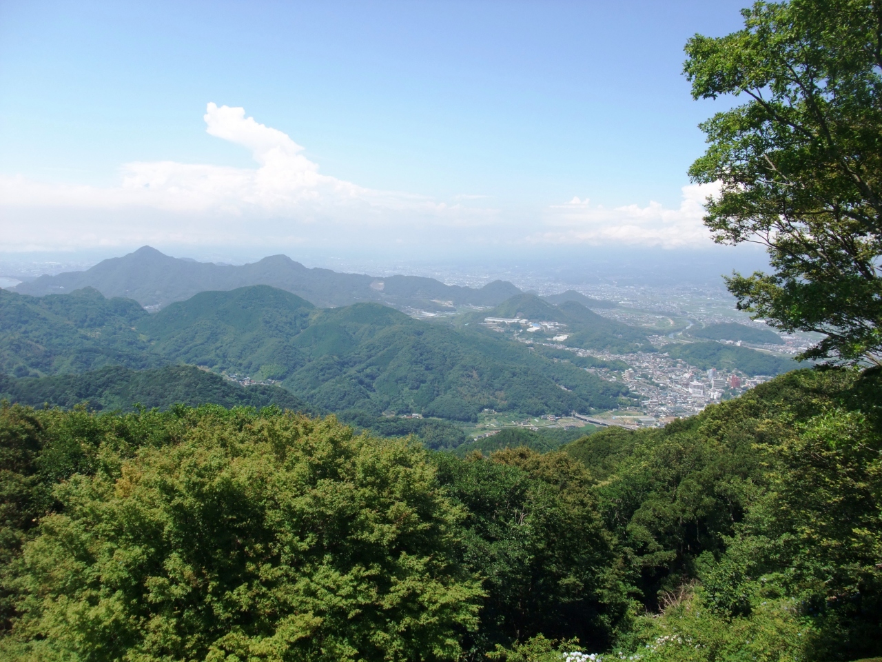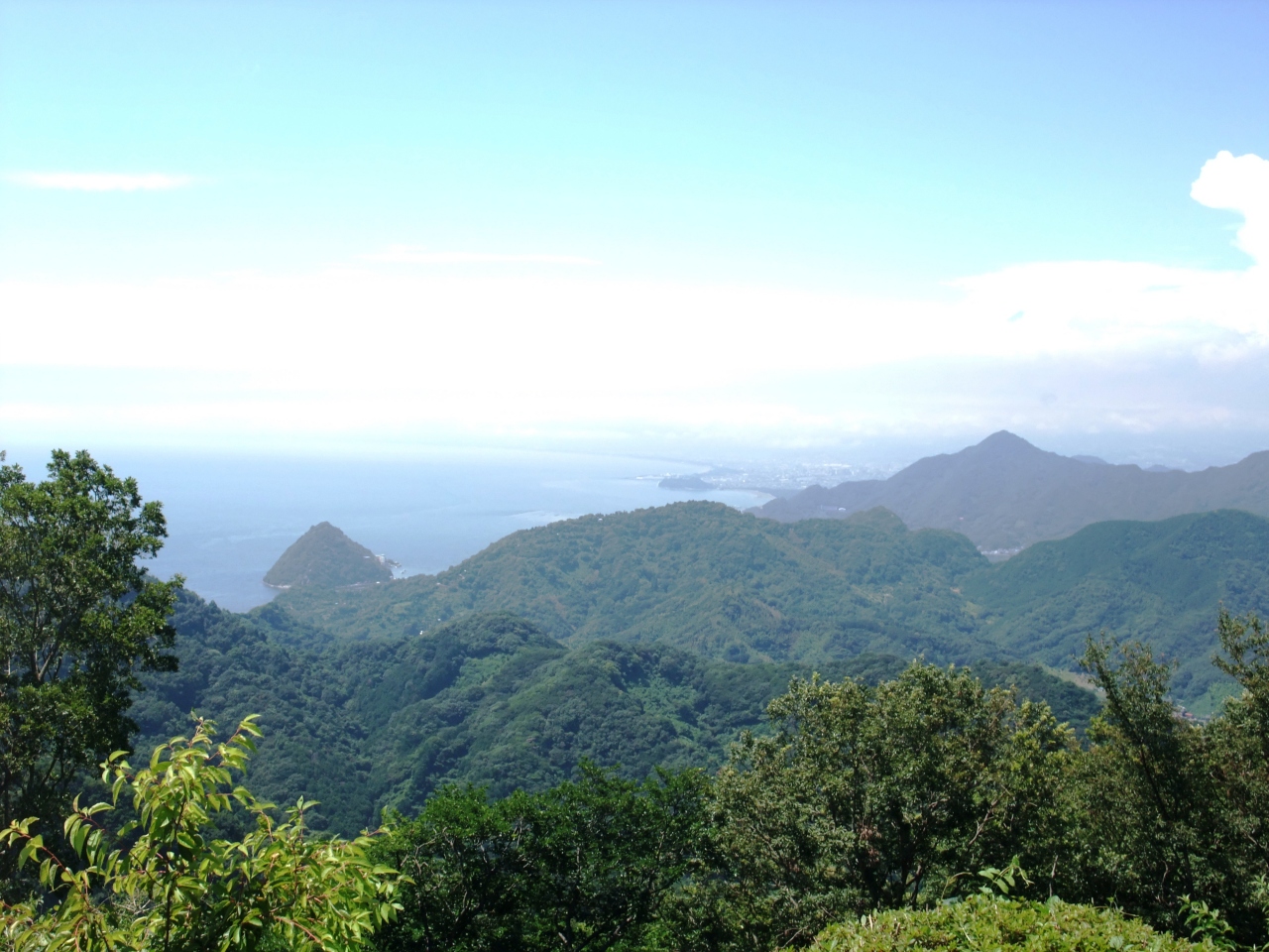 葛城さんの頂上には、二等三角点、源頼朝の像、葛城神社などがあり、散策路が整備されています。富士山を見ながら入れる足湯もあります。この日は、霞んでいて富士山は姿を見せてはくれませんでしたが、駿河湾が綺麗に見えていました。