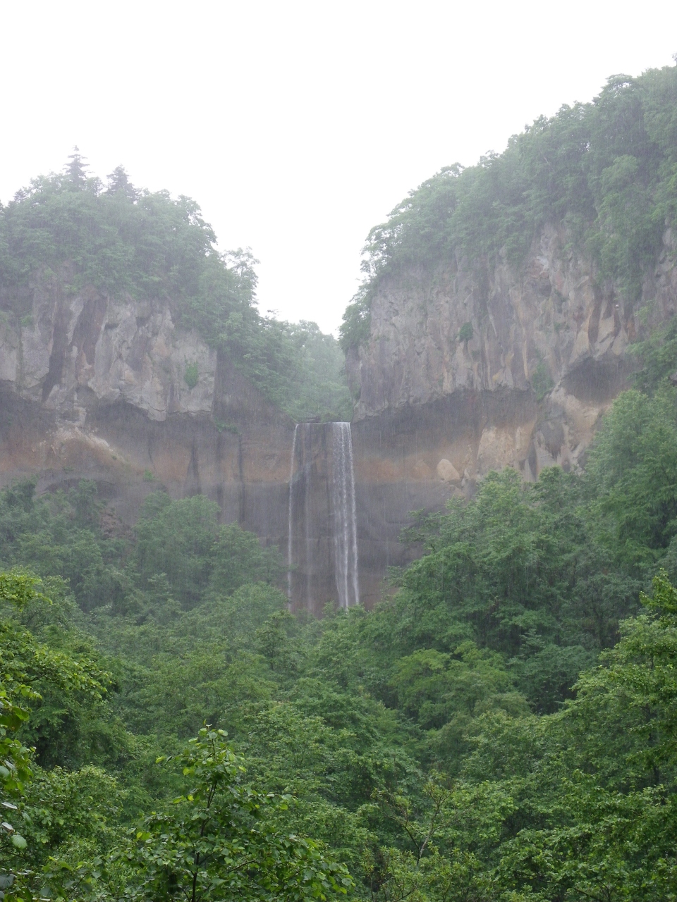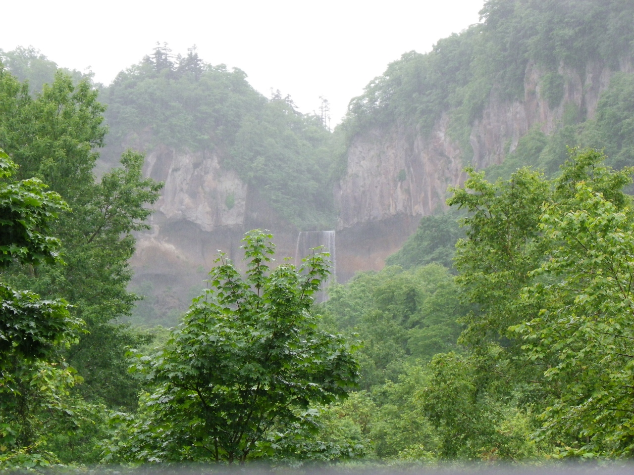 また、岩盤が脆弱な凝灰岩でできているために崩落が激しい滝です。いつまで現状の姿を保っていられるかわかりません。