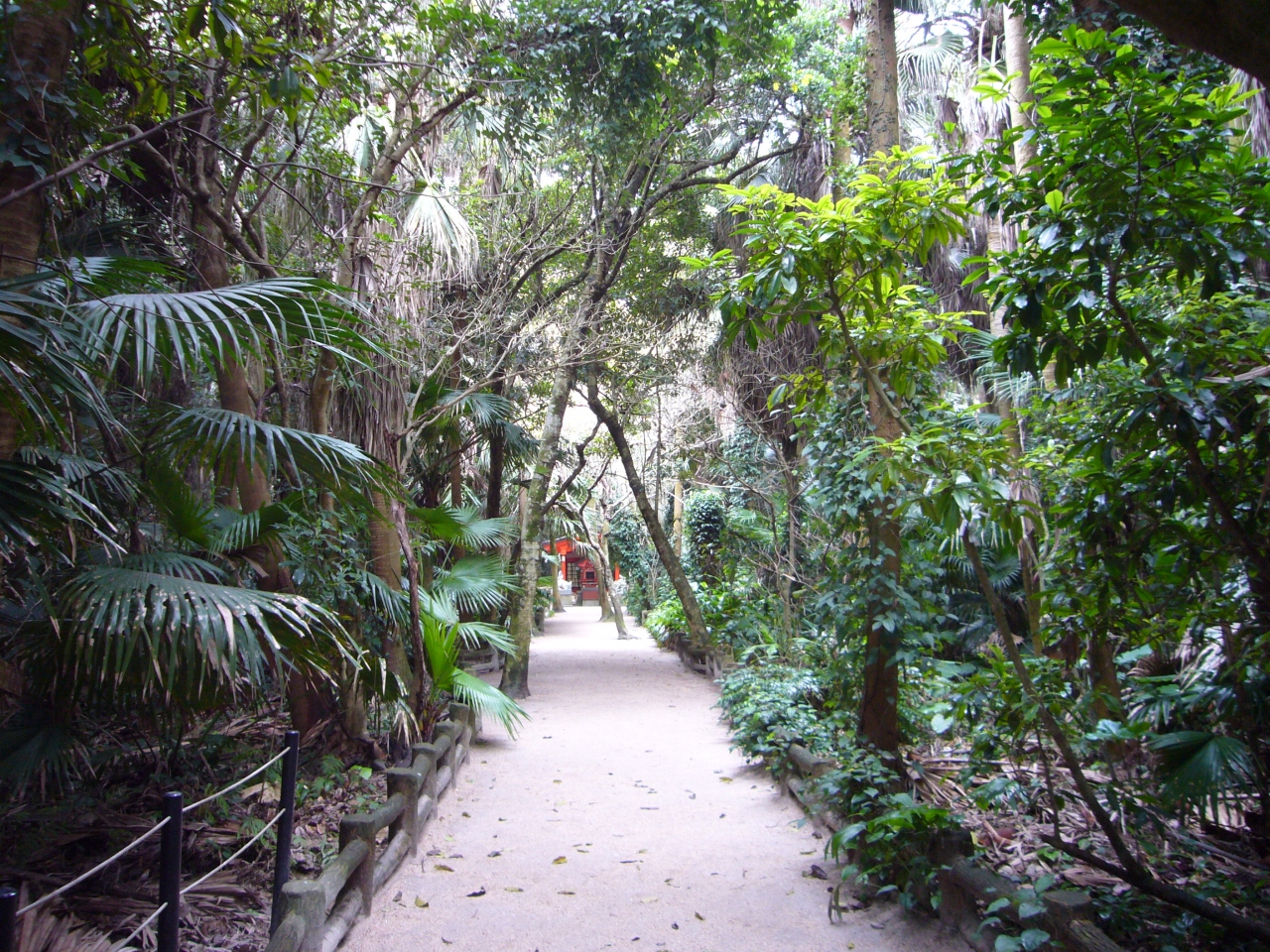 何より、青島神社本堂に向かって右側の、南国風な木々のジャングルの小道が大好き。