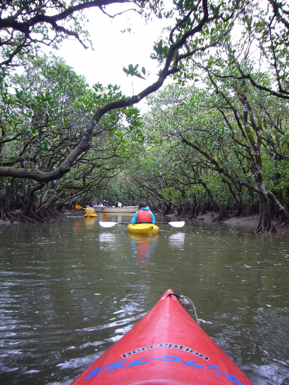 ○○川のマングローブ原生林でカヌー体験。