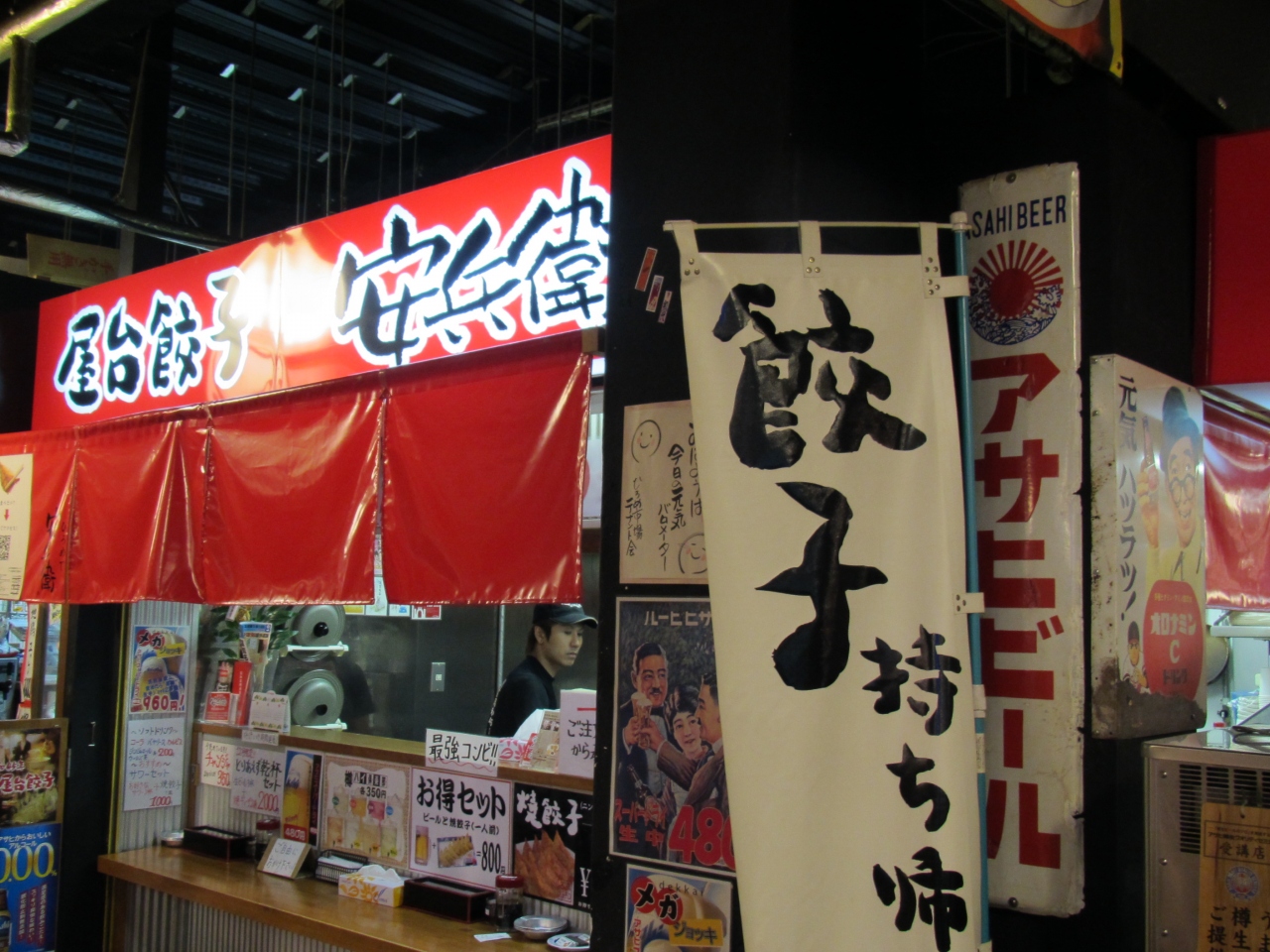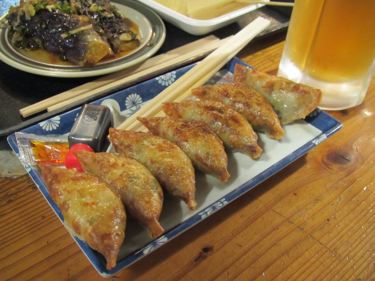 ひろめ市場で屋台餃子の安兵衛というお店があります。皮は薄めで揚げ餃子かいうくらいパリパリ(もちもちした部位もあり)、中の餡は豚肉・キャベツ・ニラ・ニンニクがジューシーで美味しいです。