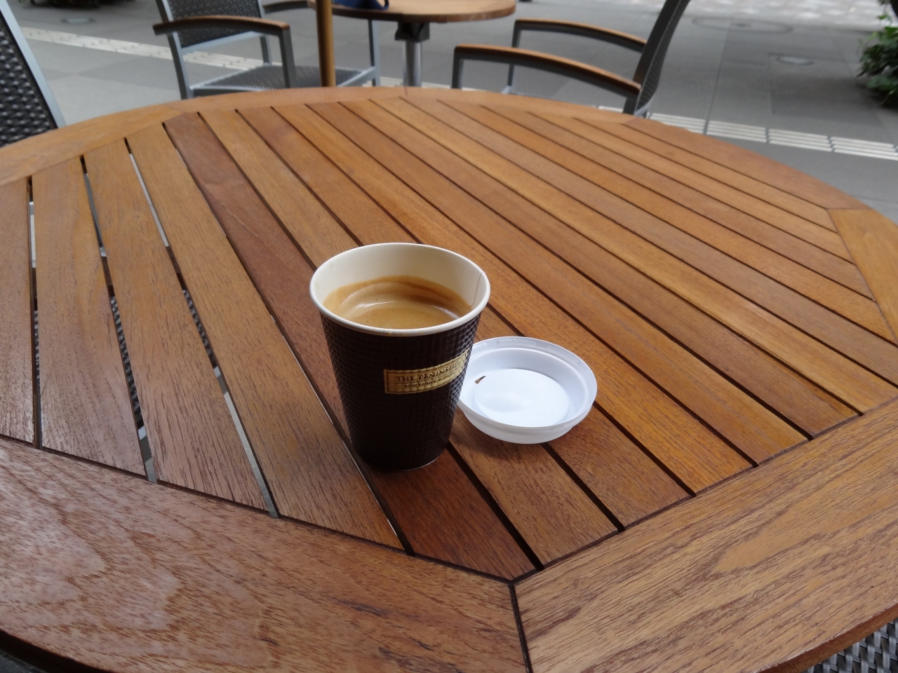 裏門の外にペニンシュラのワゴン車がいて、軽いスナックや飲み物を販売していたので、利用しました。購入後、外のテラスで頂きました。