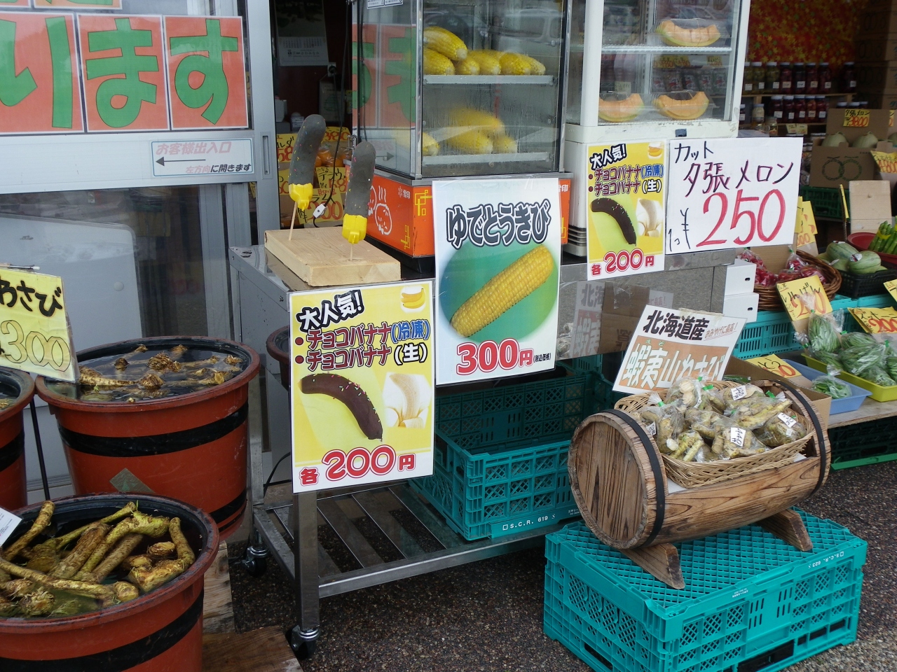 夕張メロン・ゆでとうきび・蝦夷山わさび・いかめし・チョコバナナ(これも北海道の名産?)etc...