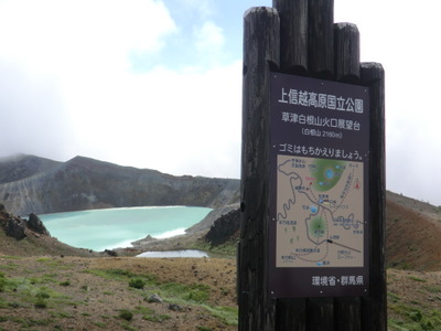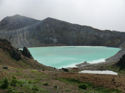 車で行く方は、駐車場の一番奥に駐車すると、湯釜への道に近いです。湯釜への道はコンクリートの道で歩きやすく、眺めのいい快適な道です。突然エメラルドグリーンの湯釜が姿を現し、みんな思わず声をあげています。