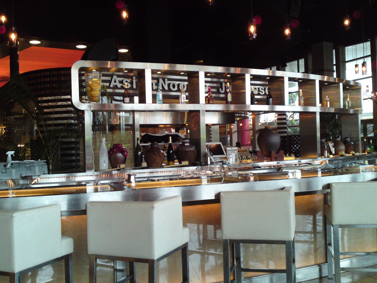 店内はお洒落・豪華でバーカウンターよりの高い段にある席はさながらバブルっぽいVIP席のようです。