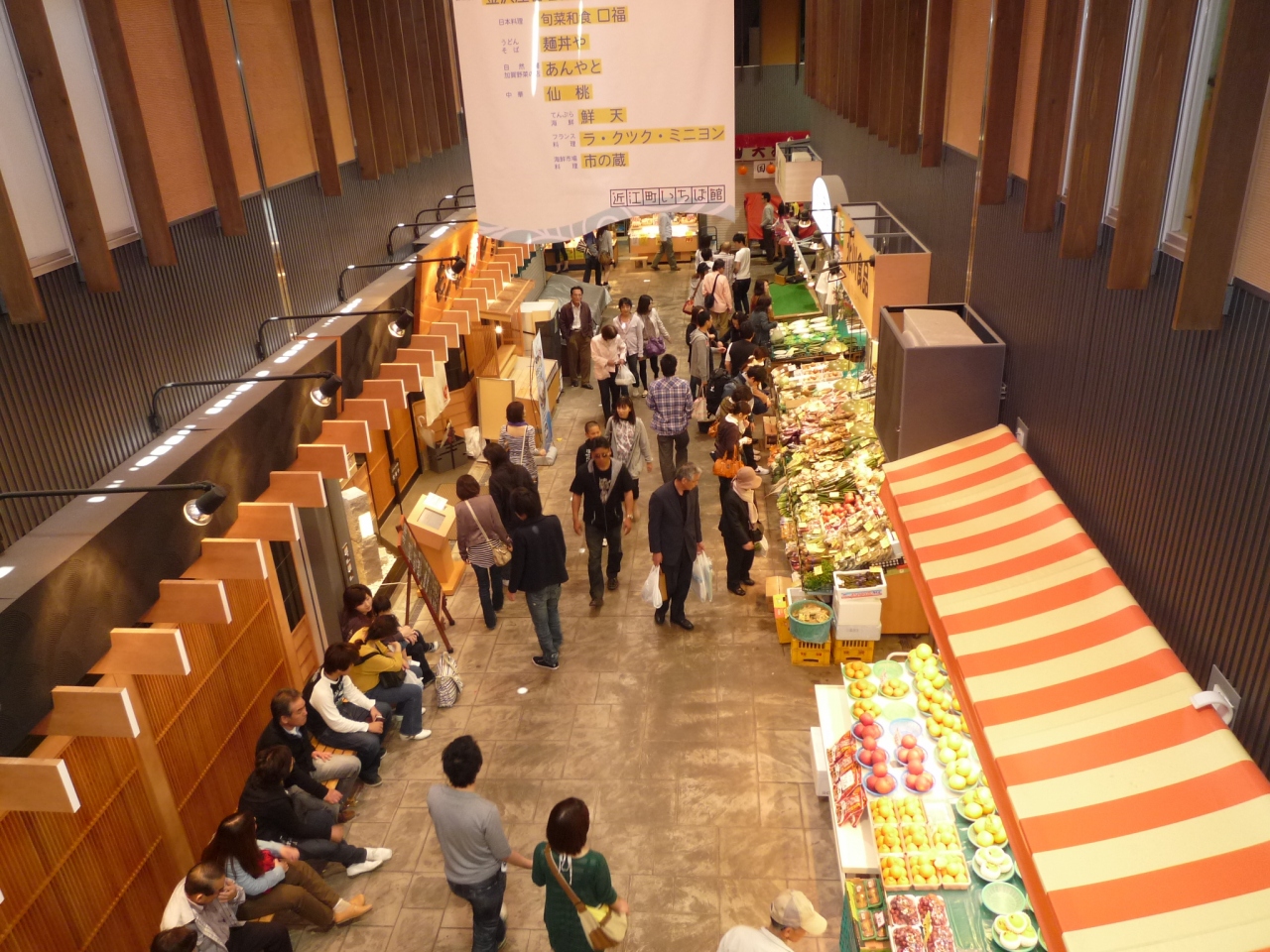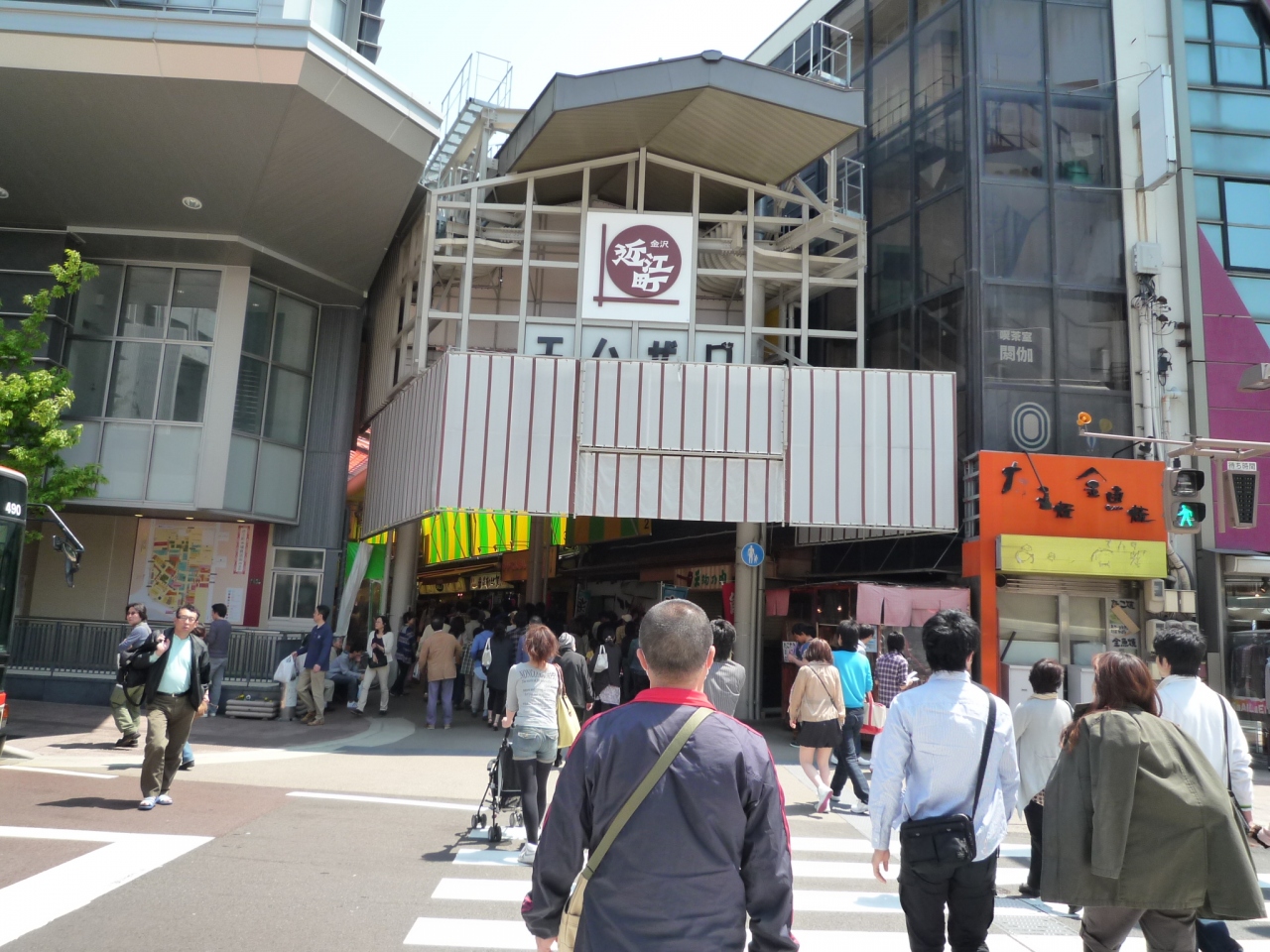 加賀野菜や北陸の海の幸などの生鮮食品、生活雑貨、飲食店が軒を連ねる市場。