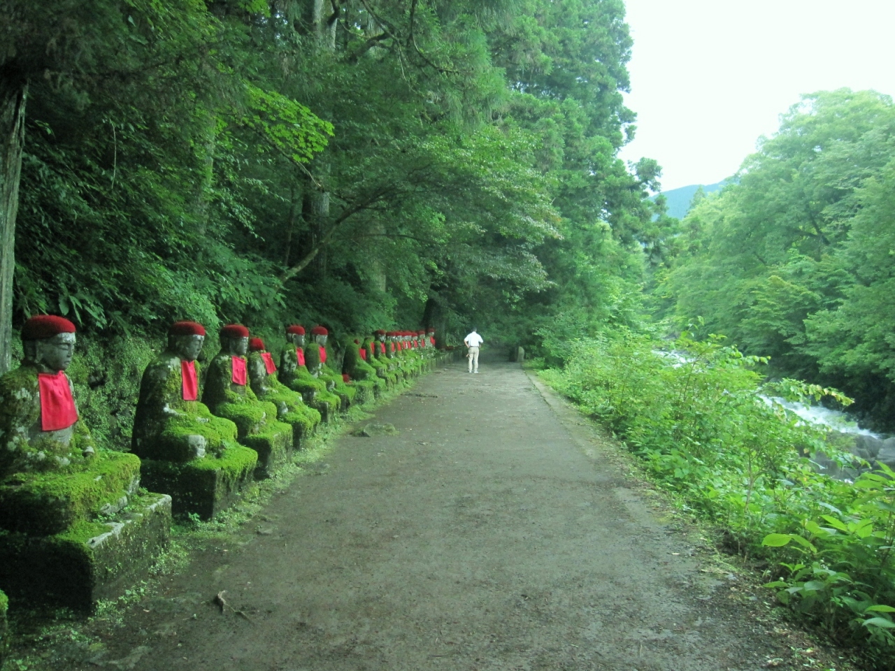 大谷川沿いの山の中を歩いていくと、急にお地蔵さんが並んでいるのが見え、異世界にでも迷い込んだような不思議な空間です。