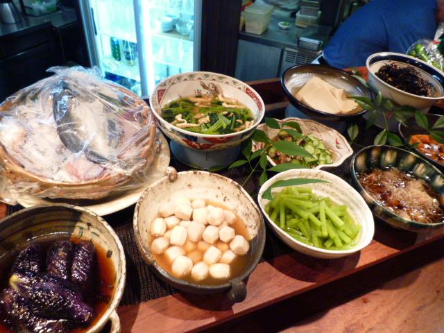 最初に頼んだ「ほろ酔いセット」には、お刺身3種類、焼魚、出巻卵のほかおばんざいが少しづつ入って、ビールかお酒がつき1500円ととってもお得です。