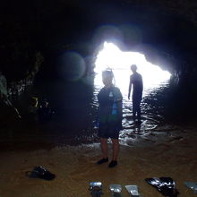 シュノーケルしながら洞窟に入ってから、探検するのもオススメです。
