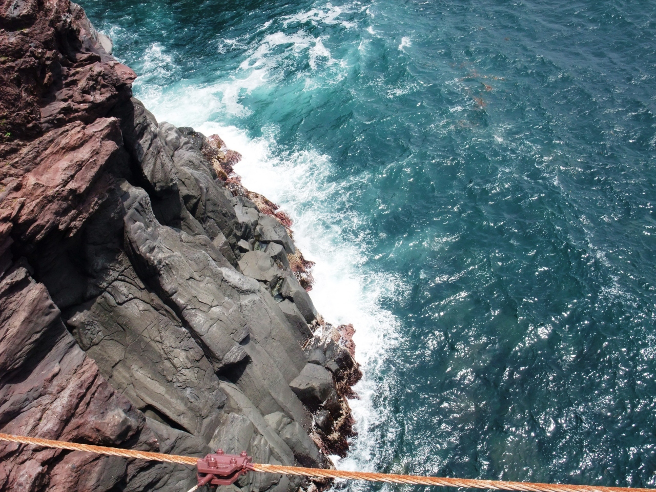 灯台があって、その先に目指す門脇吊橋がありました。角脇吊橋の上から見た伊豆の海は深く、吸い込まれそうでした。