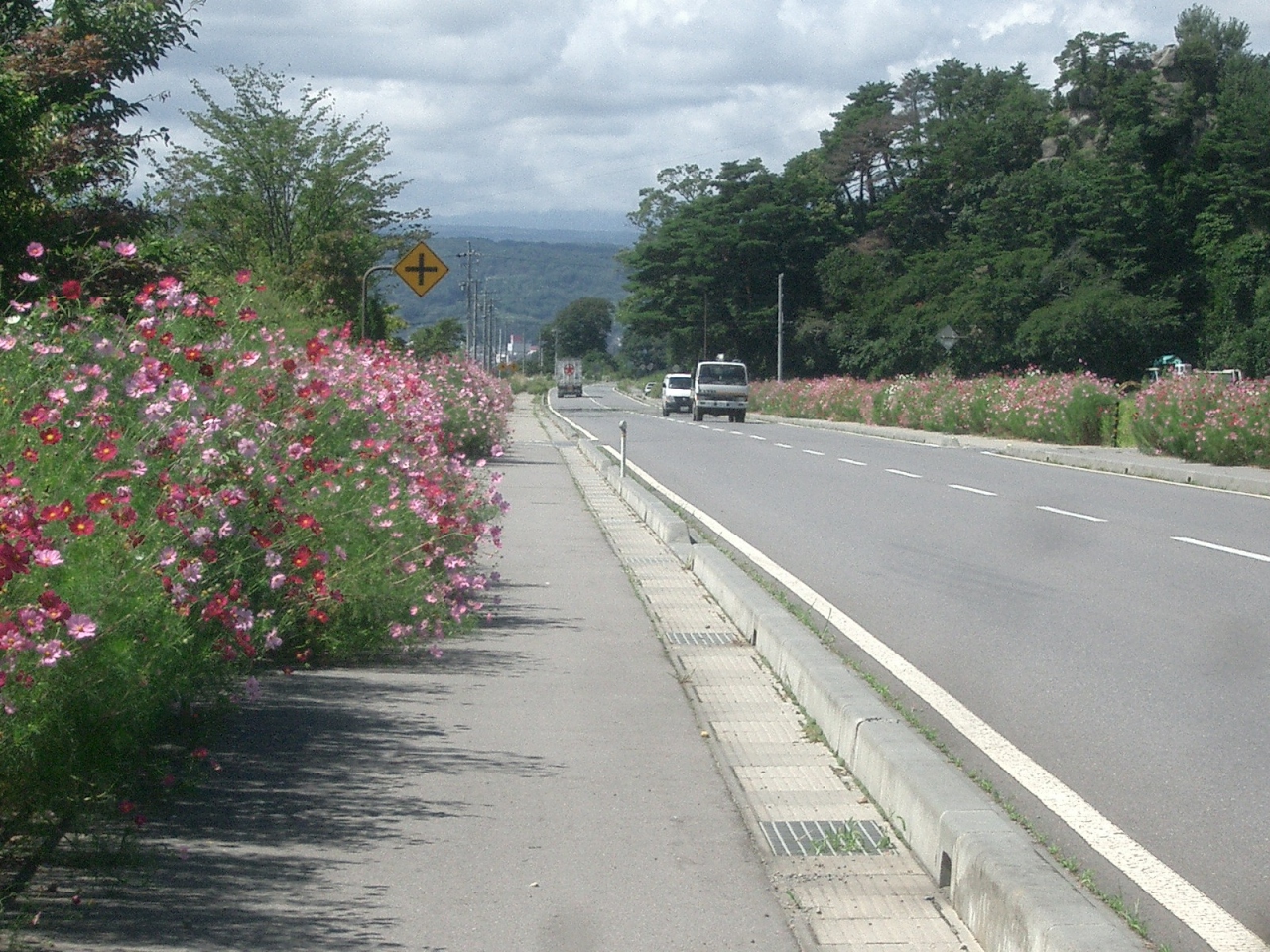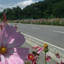 佐久のコスモス街道への行き方を聞いたら、内山峡がそこです、と教えてもらいました。まさに内山峡をはしる街道がコスモス街道です。正式には冨岡街道というのかもしれません。走りやすい道路で、両脇をコスモスが埋めていますのでとても楽しいドライブができます。地元のひとに感謝。