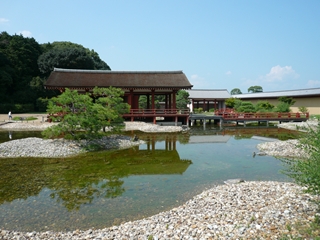 平城宮の隅っこ、大和西大寺駅からのシャトルバス停留所から最も離れた所に、ひっそりと存在している日本庭園、東院庭園。海外からの観光客には受けそうな、和の雰囲気が出てます。ただ、朱雀門や大極殿からはあまりに遠いので、訪れる人は少なく、ひっそりとしていました。