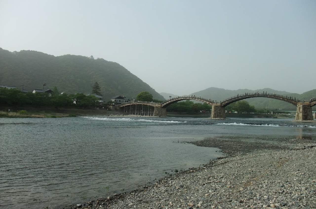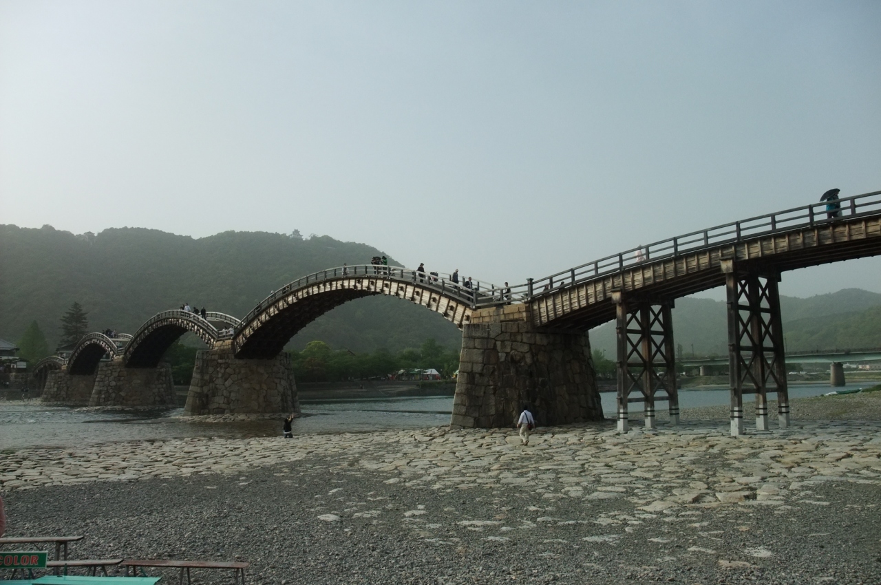 木造の橋としてかなり見ごたえがあります。古くからの伝統的な技術の素晴らしさとアーチ曲面の美しさに見とれてしまいますね。橋が架かる錦川とも絵になっていいですね。夜はライトアップをやっている時期があります。