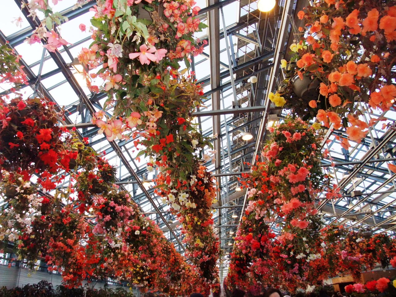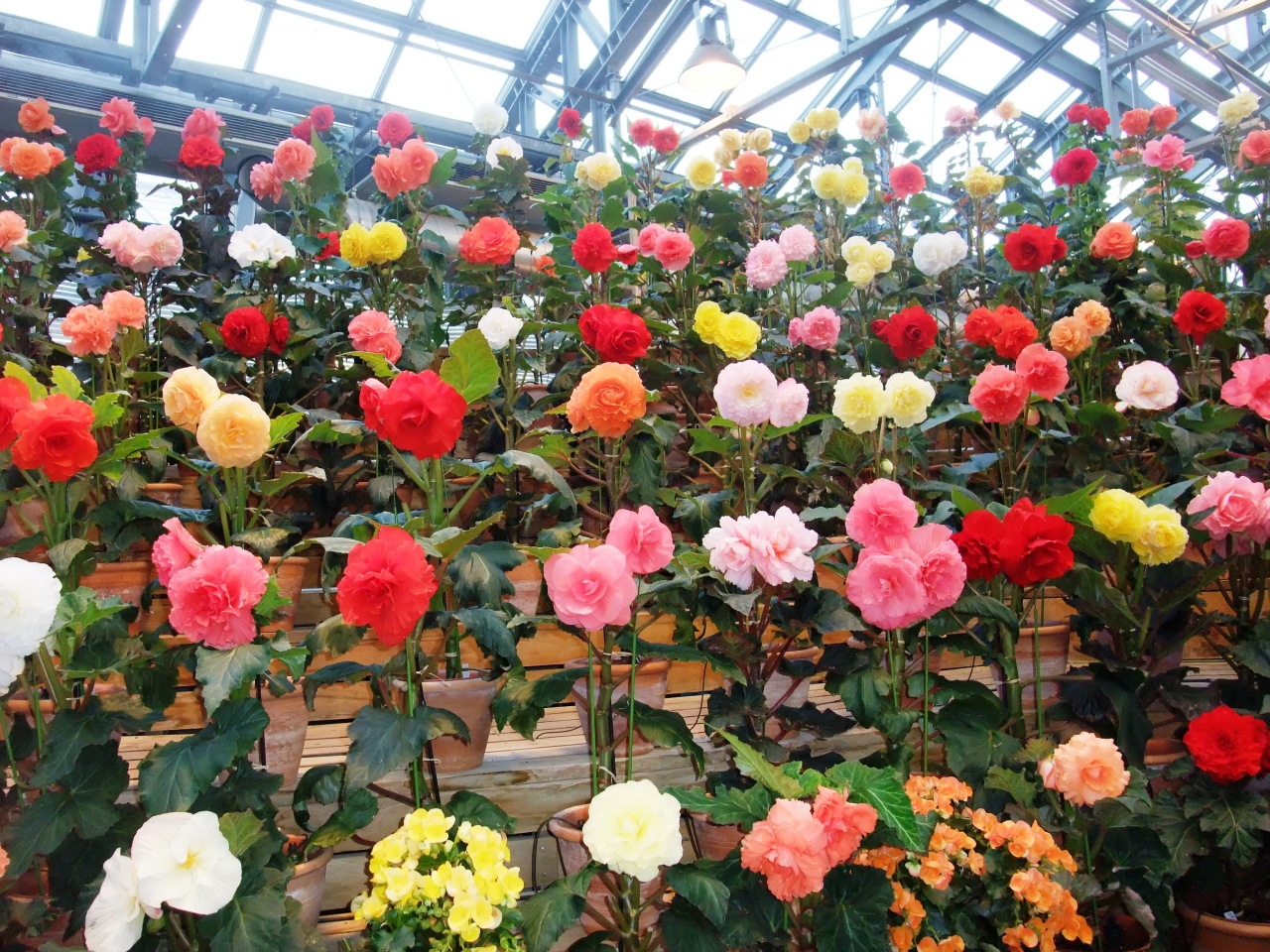冬なので、外の花は多くない中、ベゴニアガーデンでは、世界中の色とりどりのベゴニアの花が咲き乱れていました。長く垂れ下がったもの、鮮やかな大輪のものなど、初めて見るものもいっぱい!