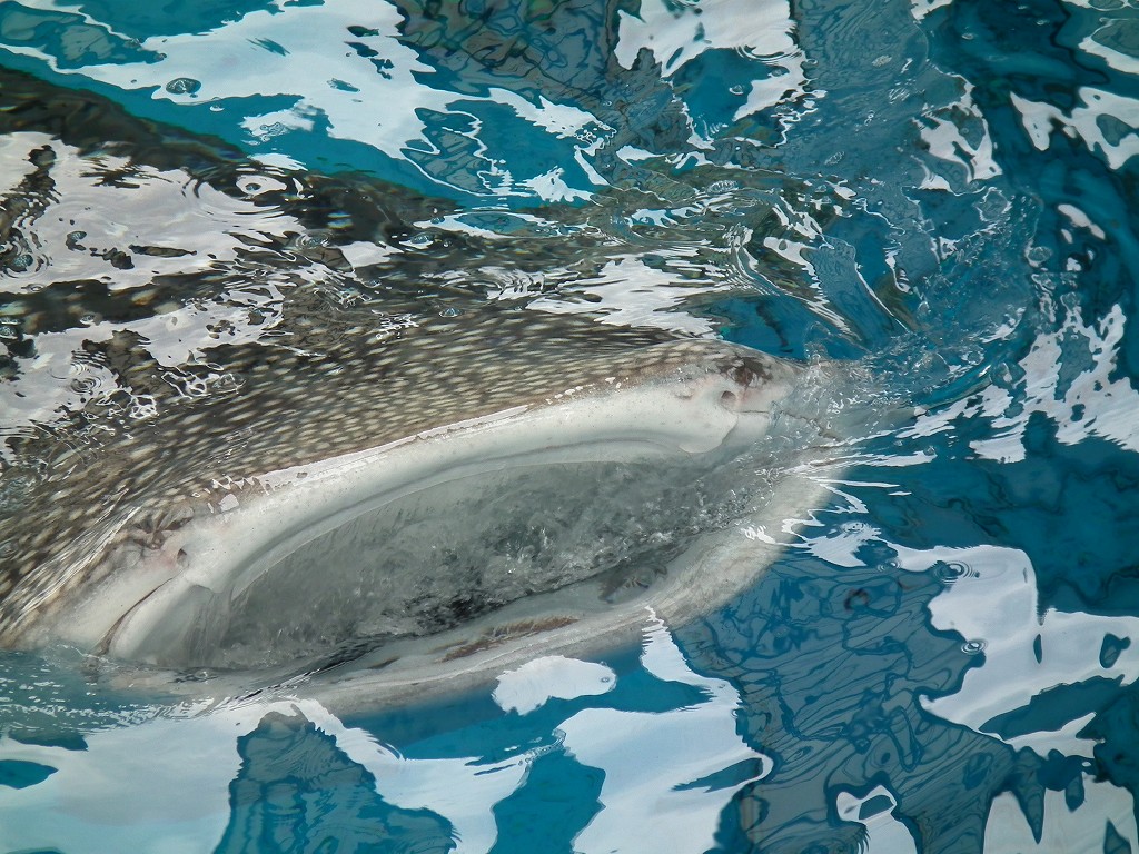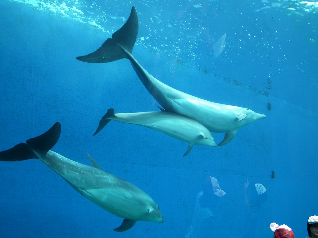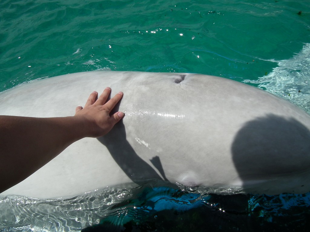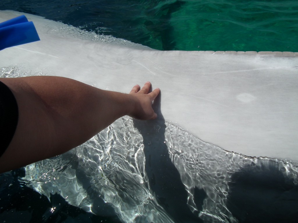 ふれあいラグーンでは泳いでいるイルカ、シロイルカに触ることができます。