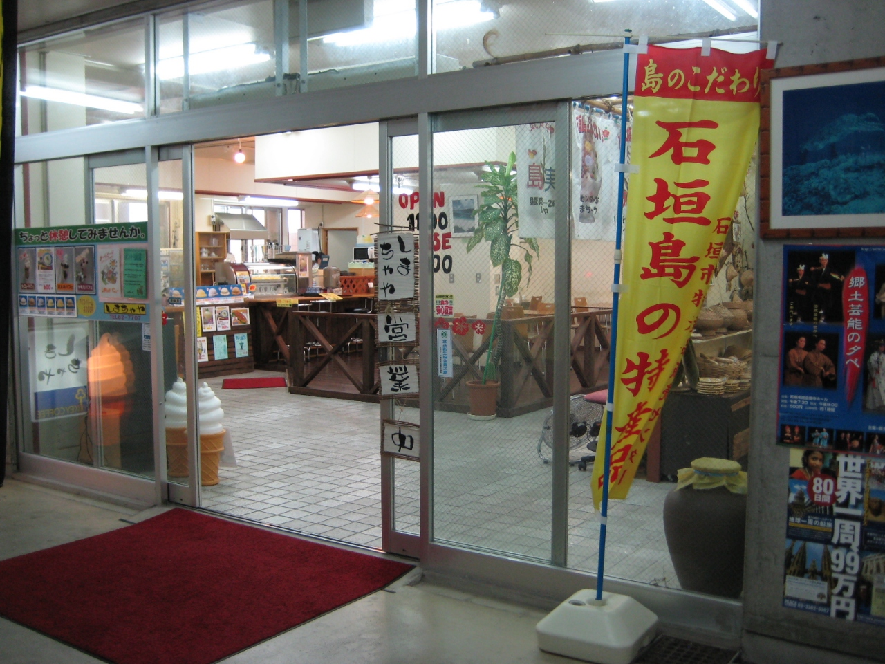 2階・・石垣市特産品販売センター・・塩、ラー油、地ビール、黒砂糖等が並ぶ