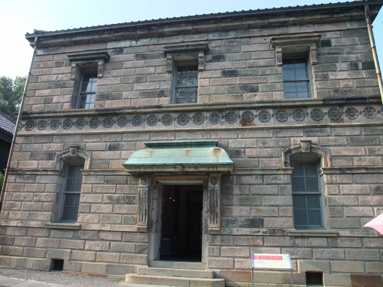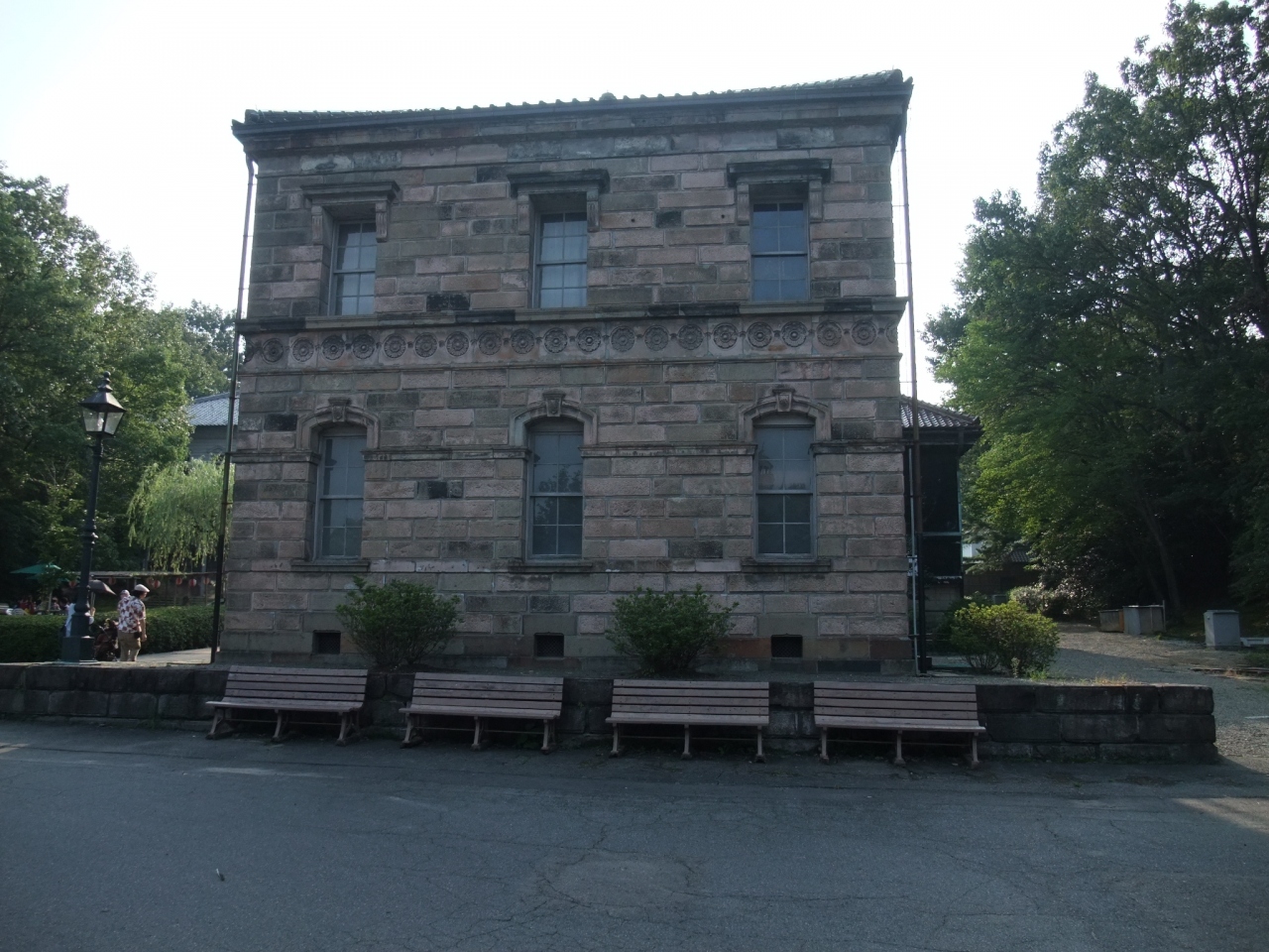 外廻りの壁を厚い石で築いており、かなり重厚な外観で、