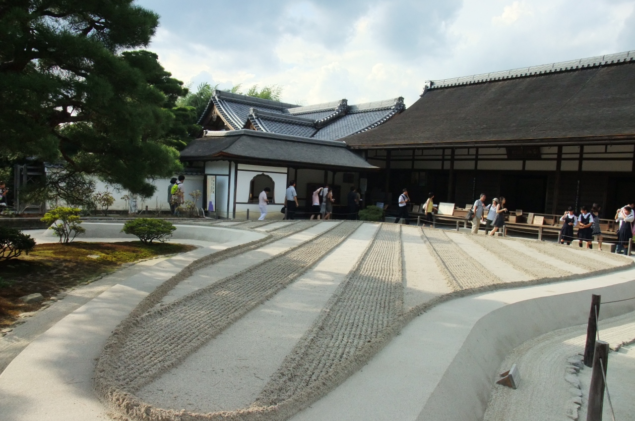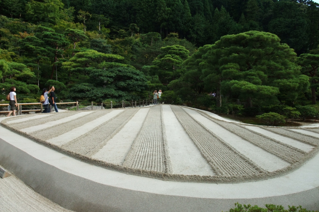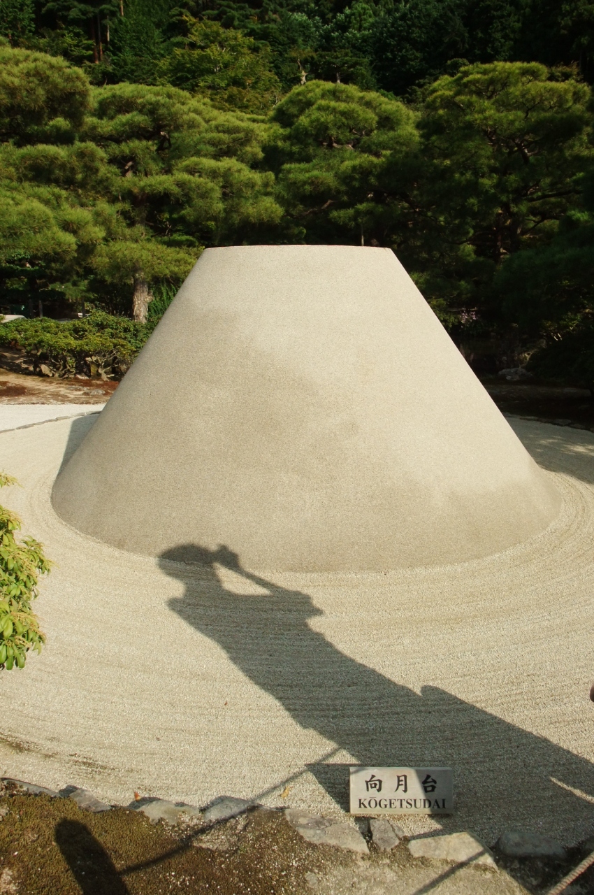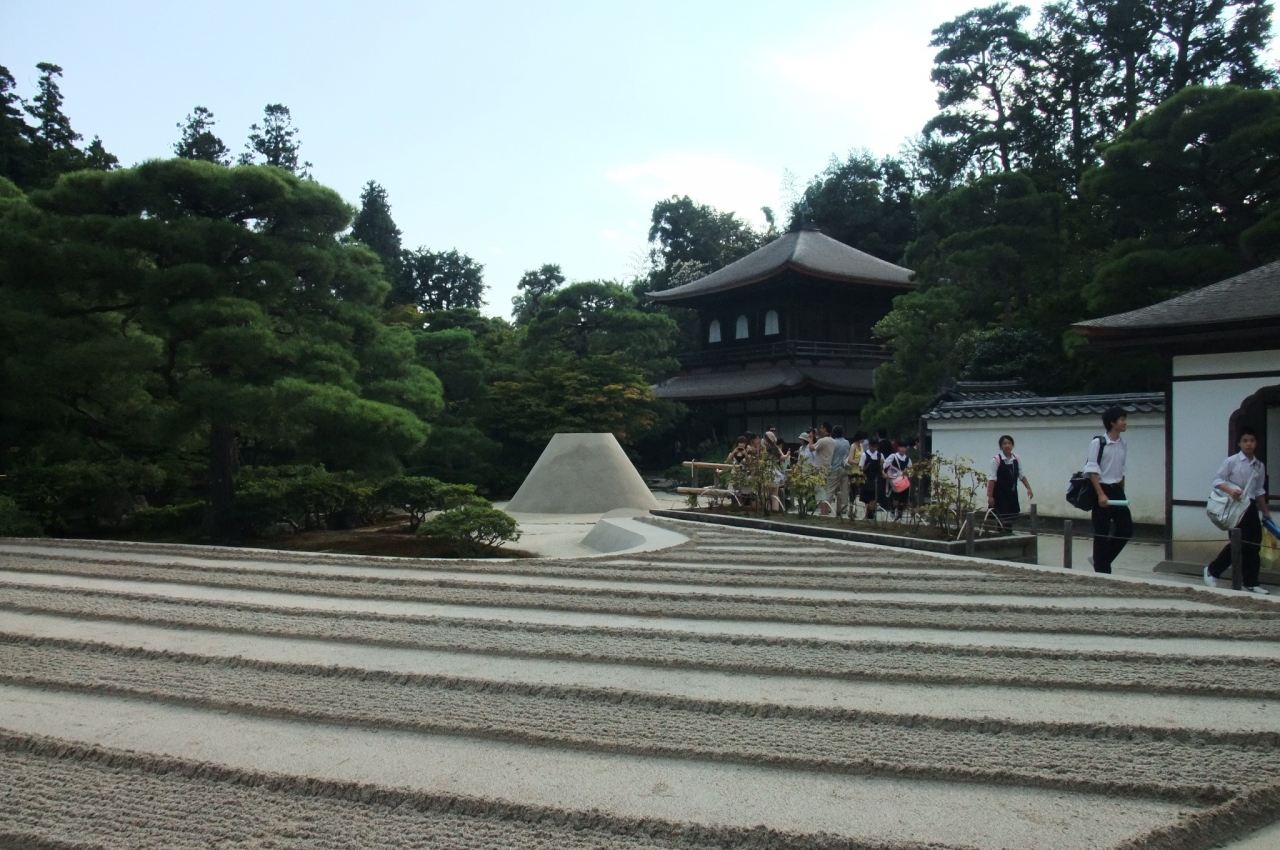 2つの砂盛りがあり、銀閣寺の魅力をより高めて引き立てています。