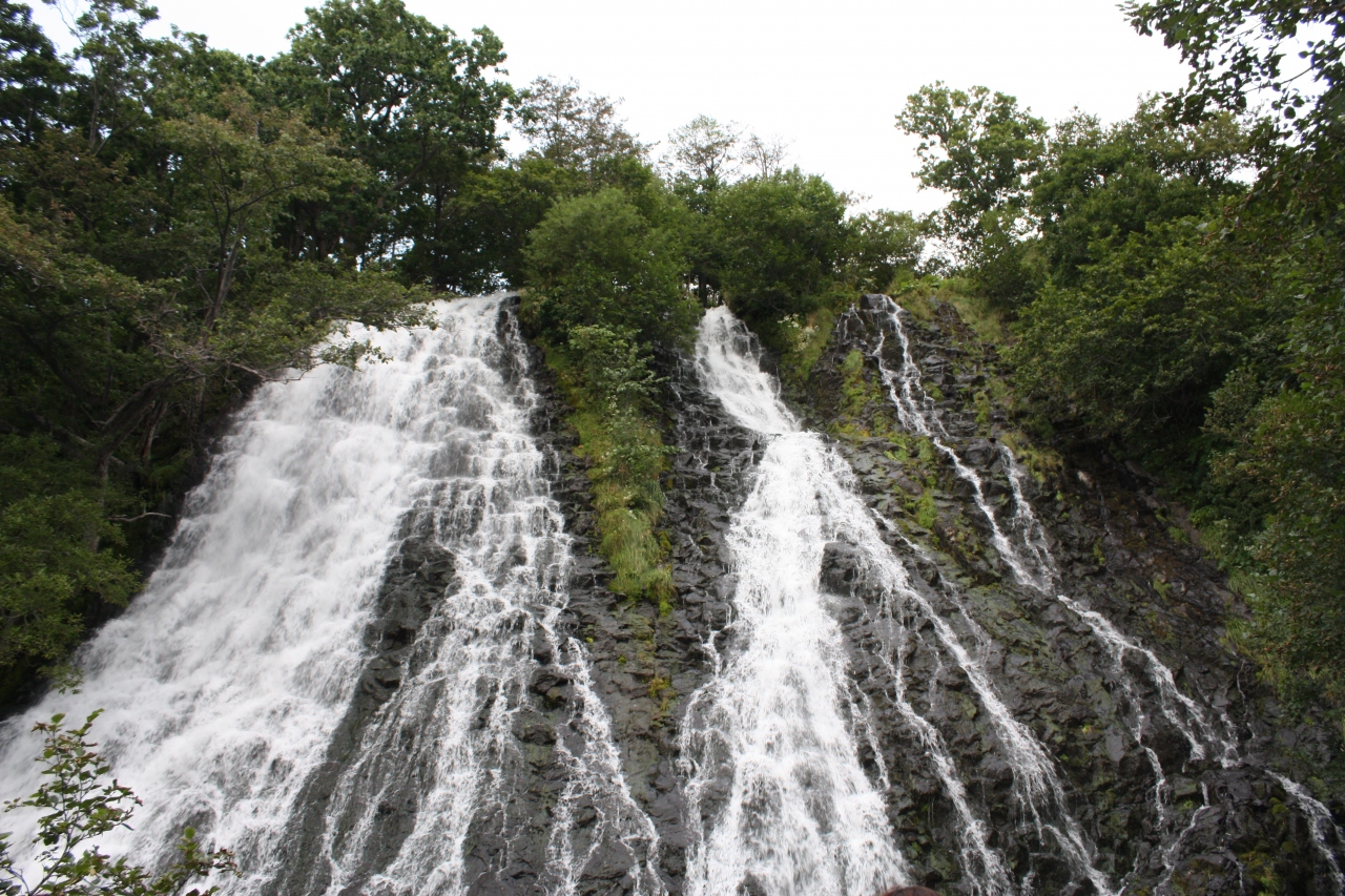 日本百名滝のひとつですが、駐車場から滝までがこれほど近いのは少ないのではないでしょうか。知床国道沿いにあるので、混雑するのが必定である気がします。私たちが到着したのは夕方だったので、それほど人は多くありませんでした。しかし、宿に帰ってパンフレットを見ると、「オシンコシンの滝は昼中は混むので、夕方を狙うべし」と観光指南がありました。朝早く訪れることができる方なら、それも混雑を回避できるでしょう。