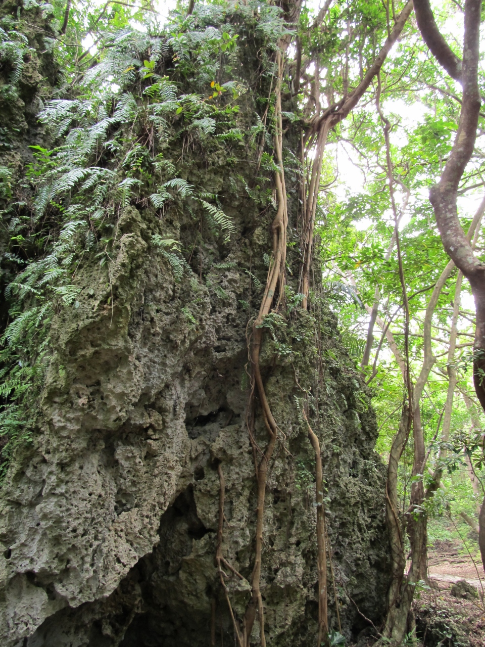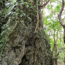そびえ立つ鍾乳石や生い茂る木々の枝や根。