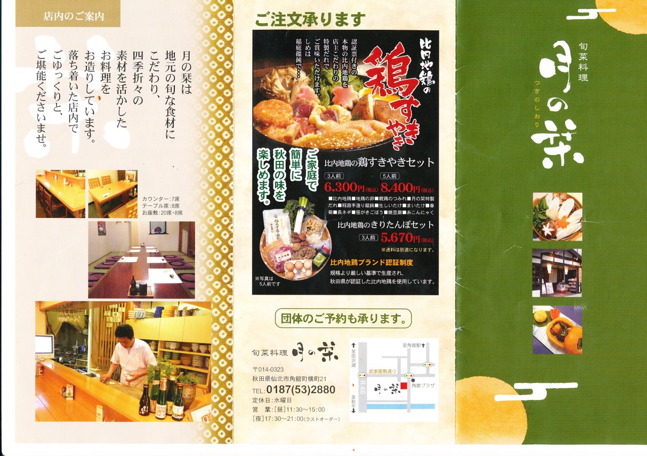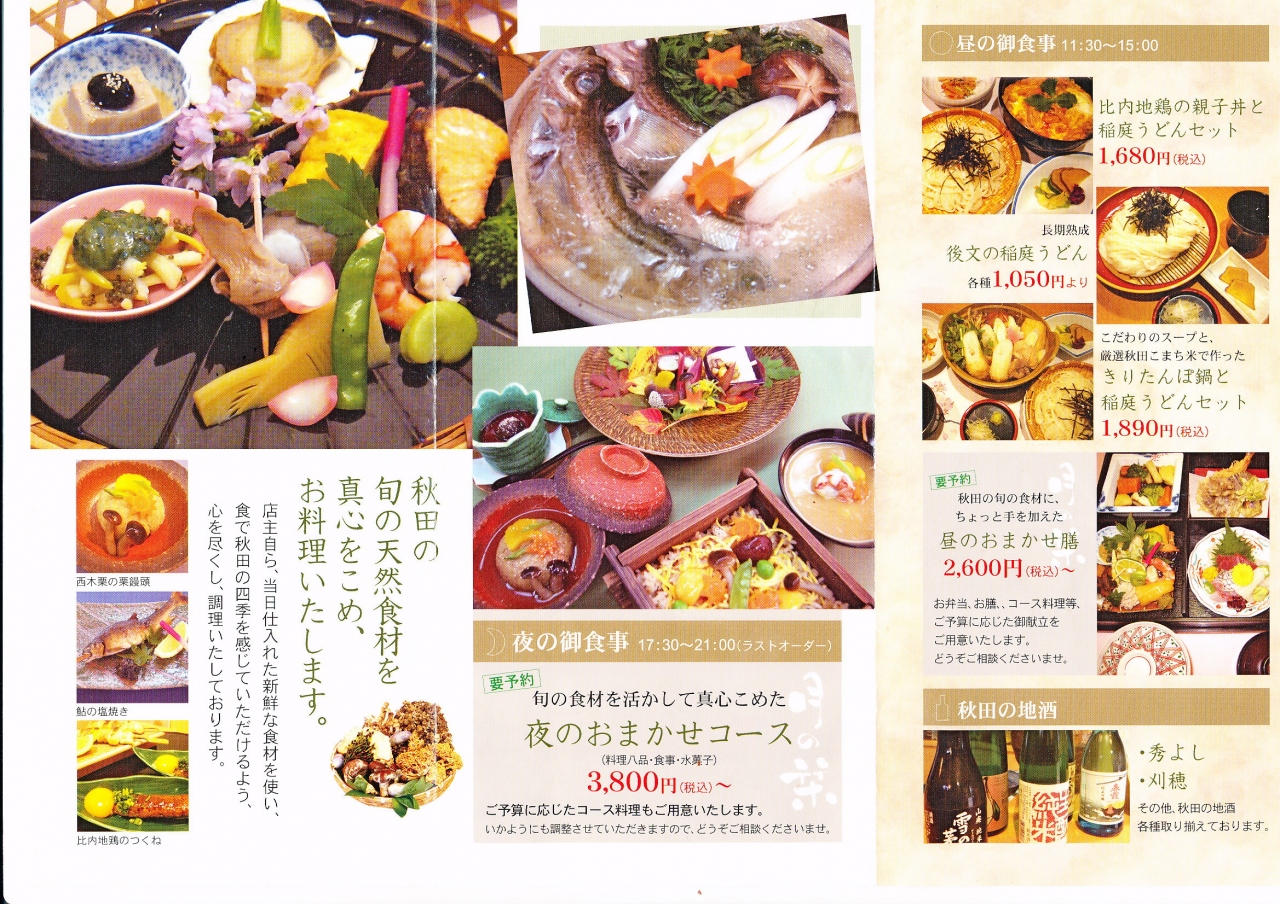 角館の昼食を,旬菜料理「月の栞」という店にした.角館プラザホテルの前の便利なところ.比内地鶏の親子丼と稲庭うどんセット1680円を注文,当然それにビール!おいしくてまあまあのボリューム.店の雰囲気も明るい.合格!