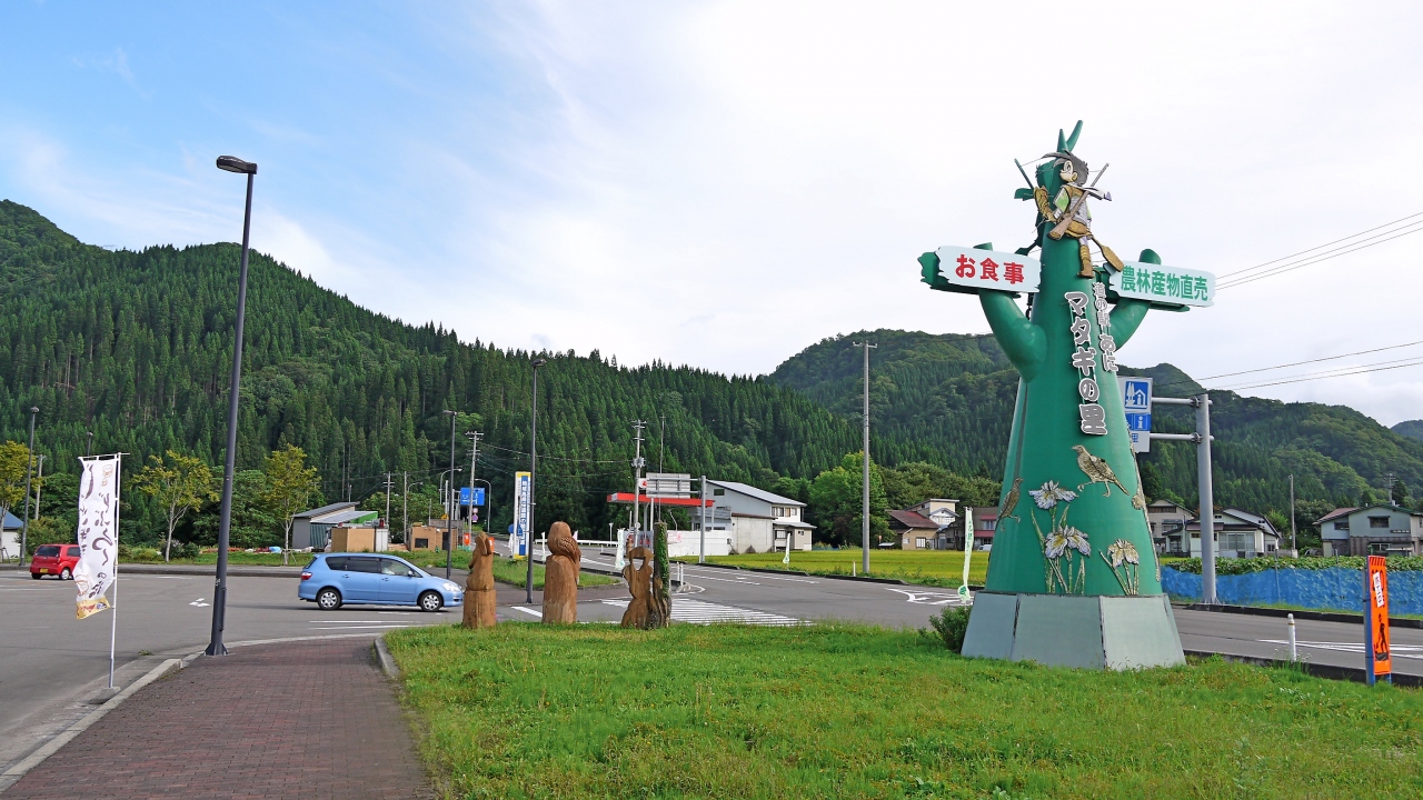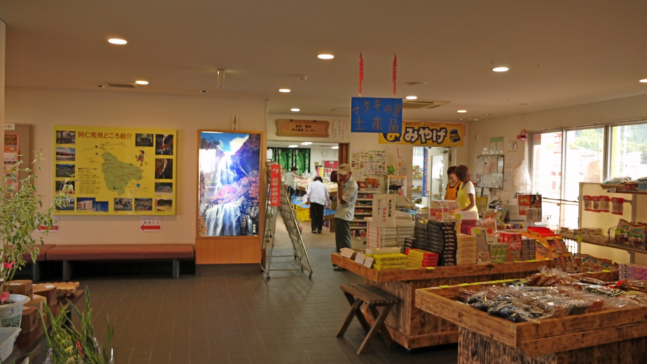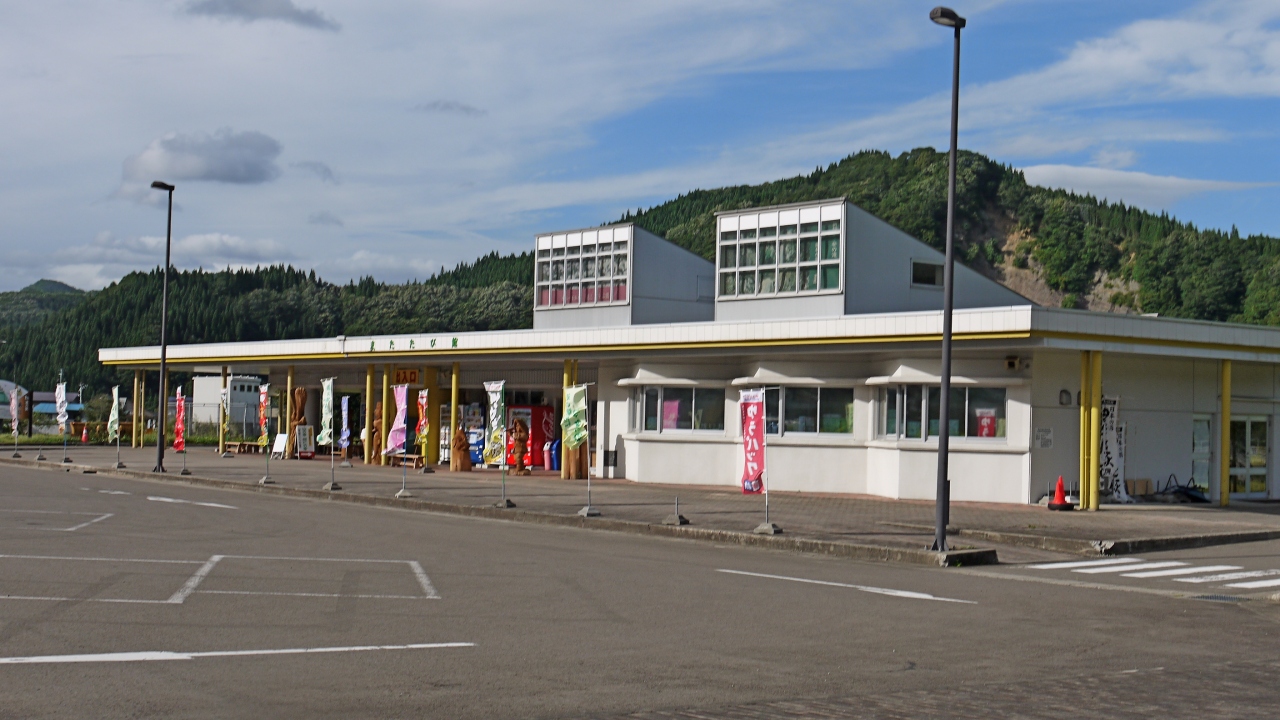 比立内駅から3分の道の駅あに.国道105号線,阿仁街道でもアクセスできるが,秋田縦貫鉄道からもアクセス可能.山菜,わさび漬けなども販売している.打当温泉マタギの湯の予約もできる.観光パンフレットもゲットできる.近くに来たら寄ると良い