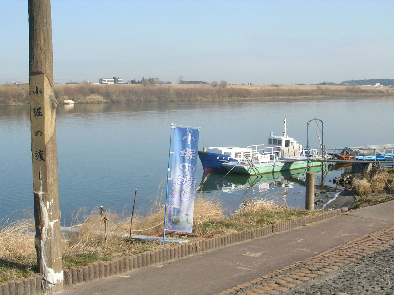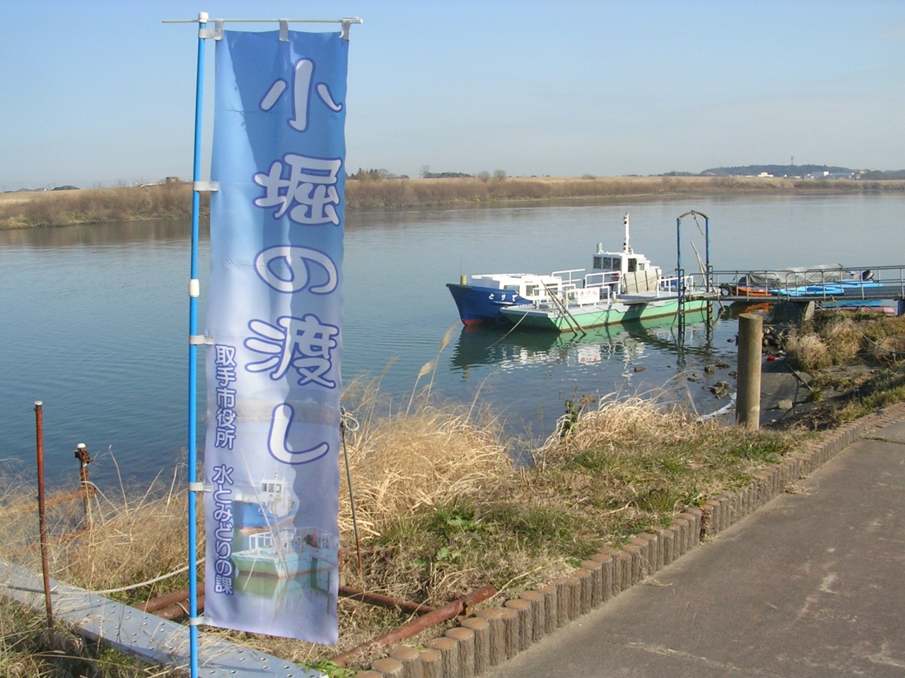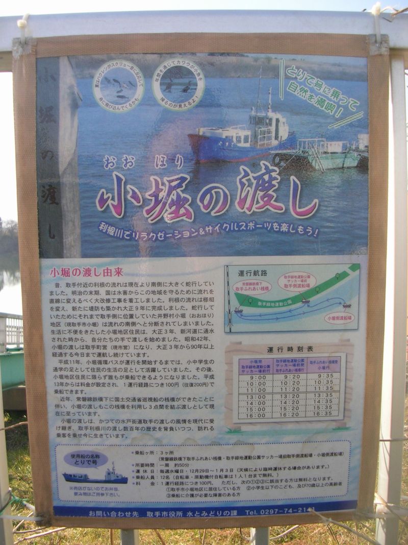 対岸にある取手市飛地を結ぶ、市営の渡し船です。乗船料はわずか100円。帰路は、同じ船で戻ってきてもいいし、バスも走っています。天気がよければ、河川敷を散歩しながら戻るのもいいですね。安・近・短の旅行先としてオススメの場所です。
