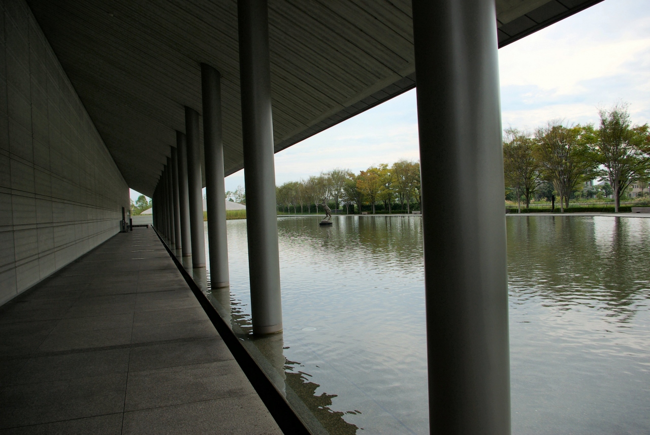 館内は平山郁夫館、佐藤忠良館、樂吉左右衛門館の3つに分けられ、館内の中心部にレストラン、ミュージアムショップが設けられている。美術館はあたかも水の上に浮かぶかの如く建てられており、浄化された水が常時循環していて、大雨が降っても水が池から溢れ出ないような造りになっている。池の周りに木立があり、秋には紅葉を楽しむことが出来る。